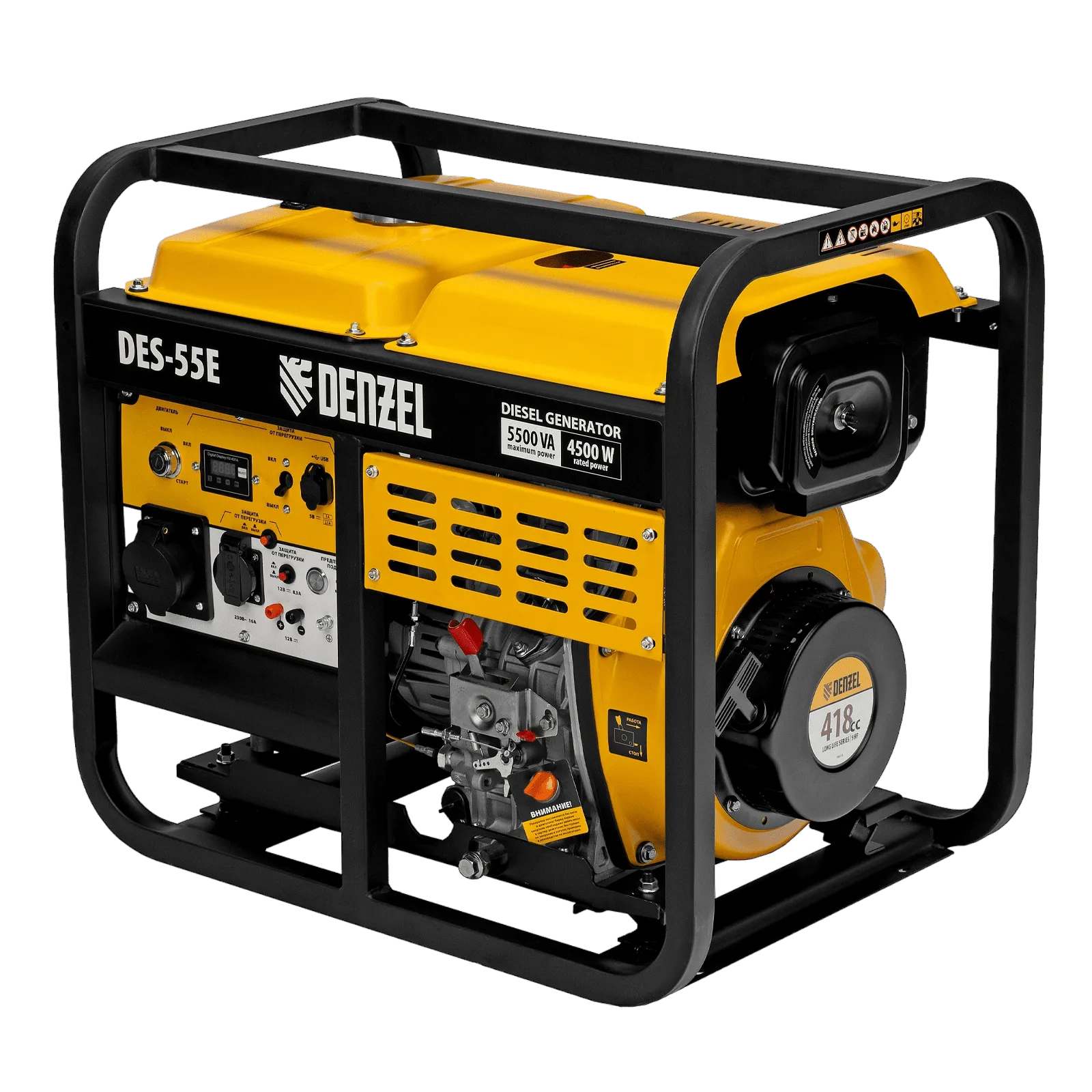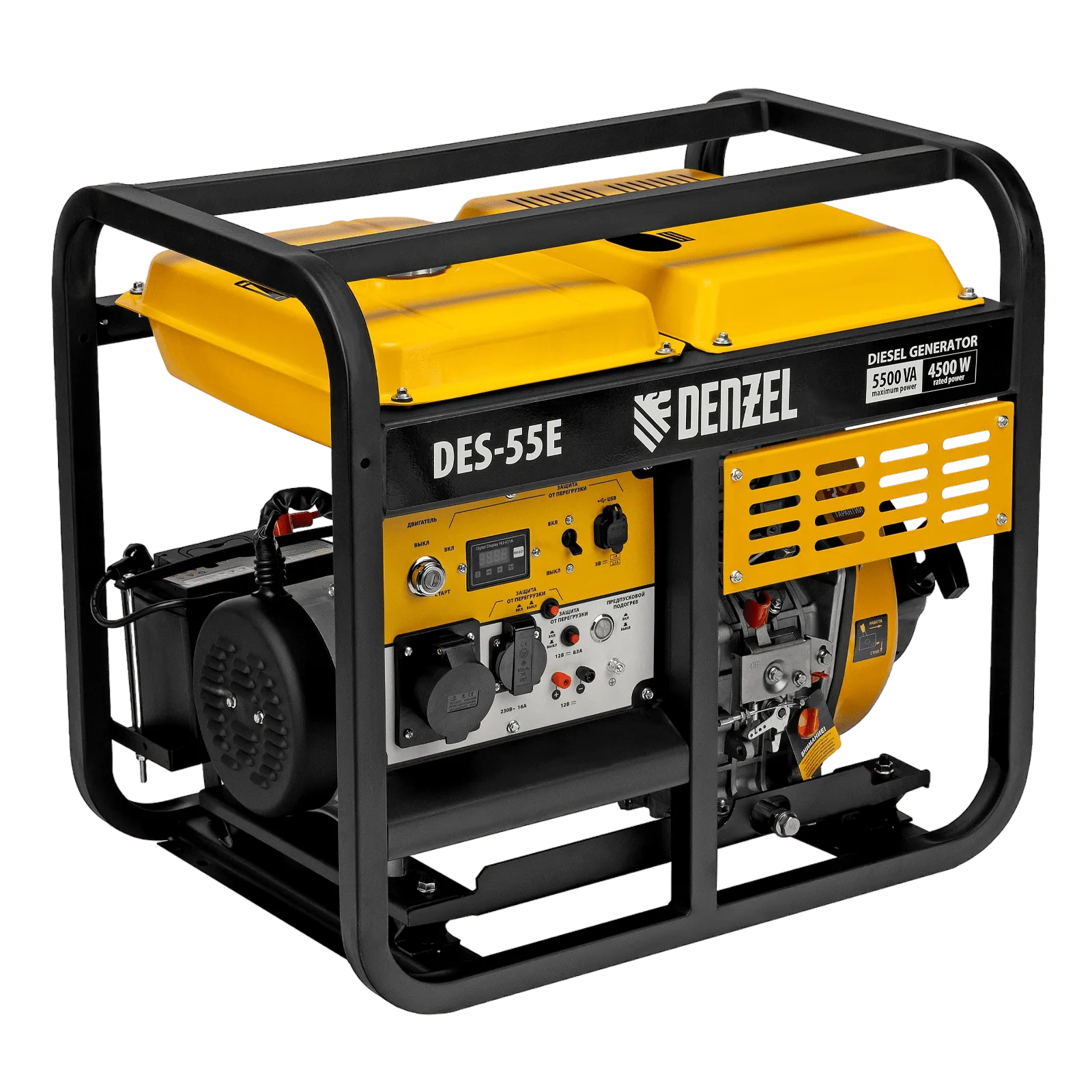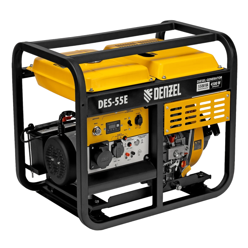 ПроизводителиГенератор дизельный DES-55E, 5,5 кВт, 230 В, 11 л, электростартер Denzel