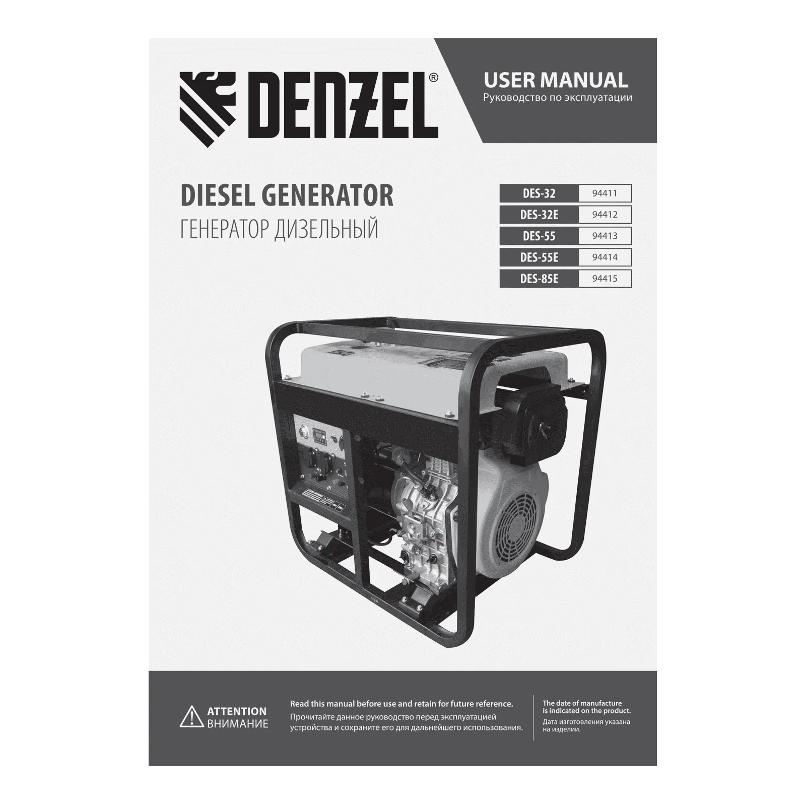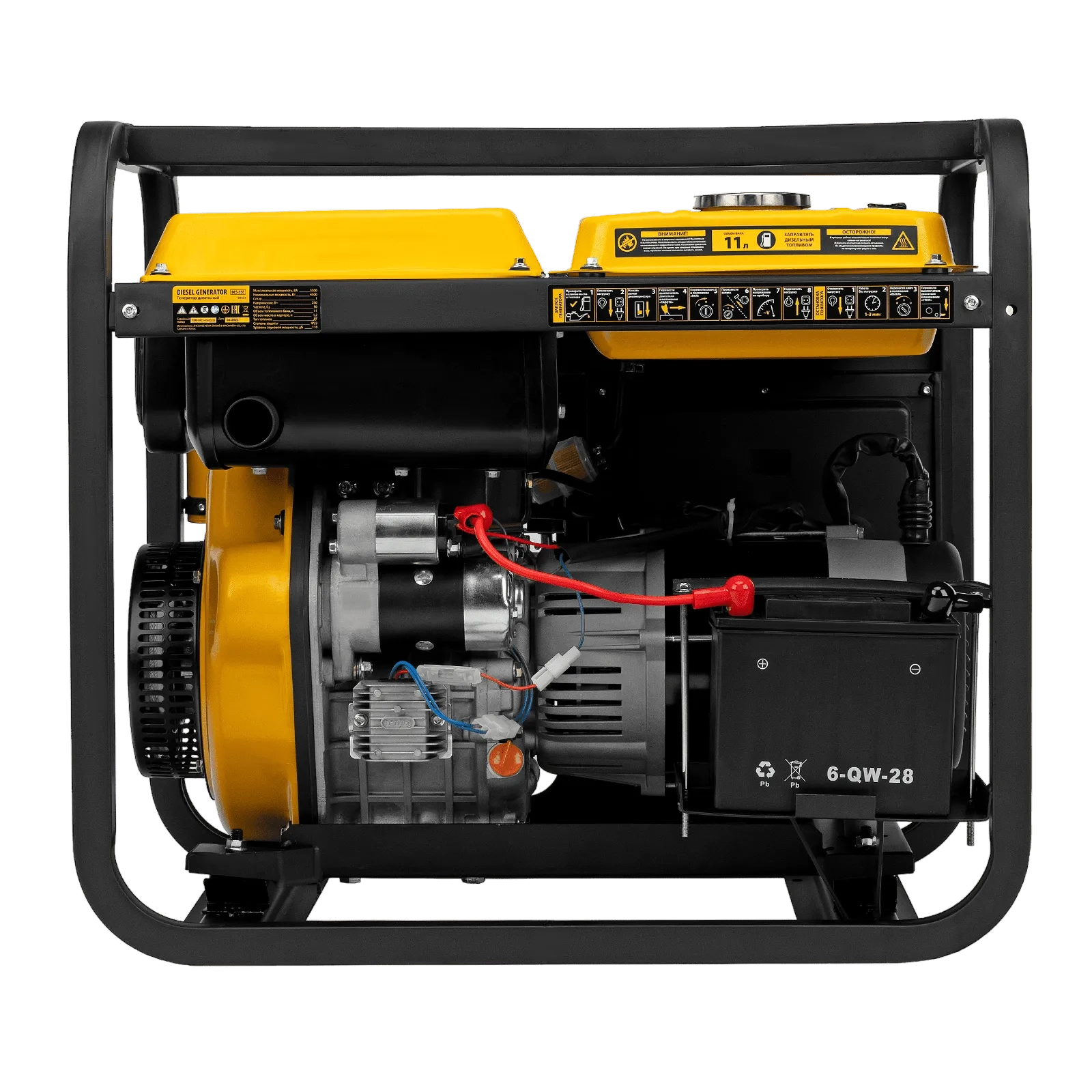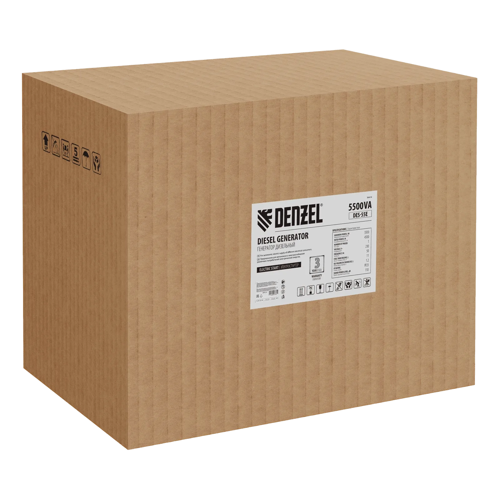 ПроизводителиГенератор дизельный DES-55E, 5,5 кВт, 230 В, 11 л, электростартер Denzel