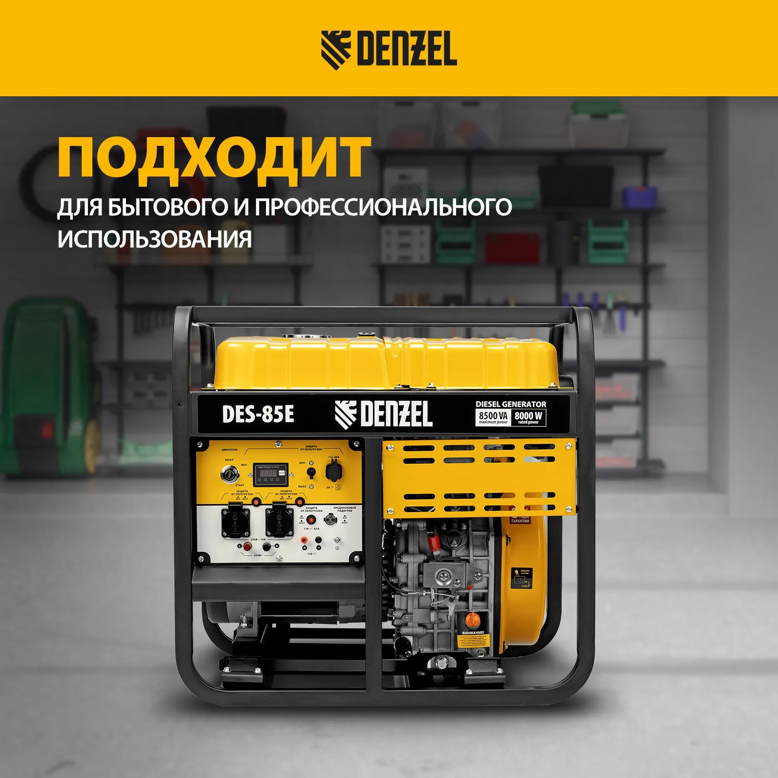 ПроизводителиГенератор дизельный DES-85E, 8,5 кВт, 230 В, 16 л, электростартер Denzel