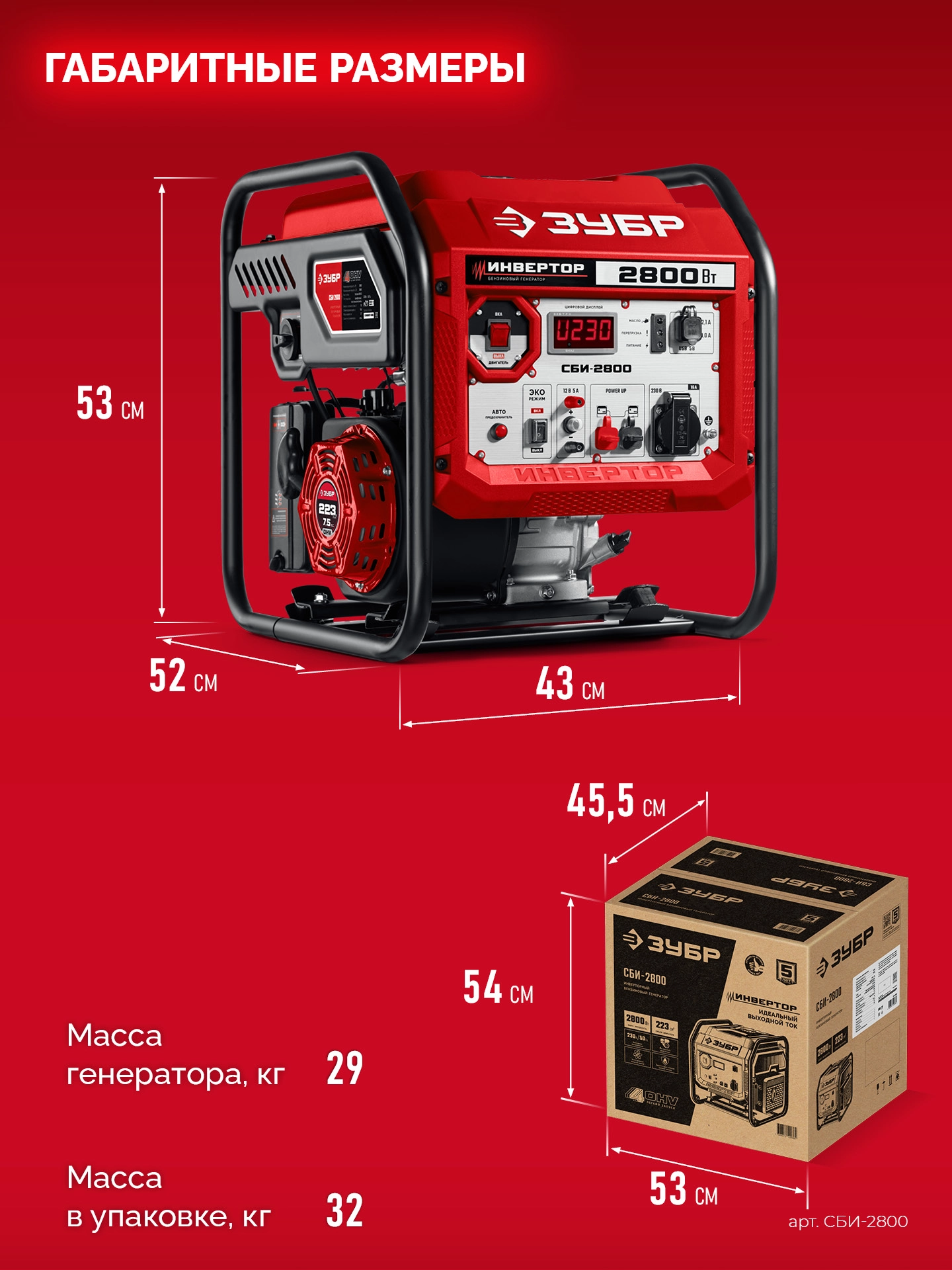 ПроизводителиГенератор инверторный 2800 Вт, (СБИ-2800) ЗУБР