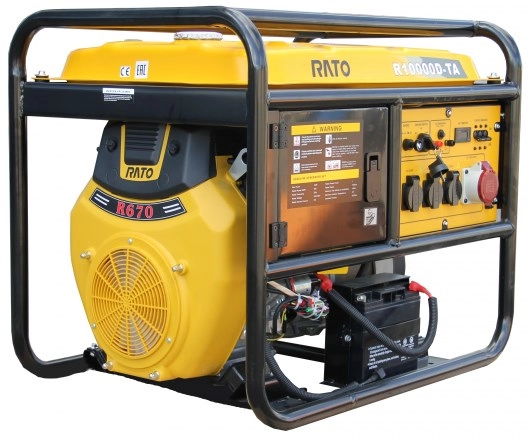 ПроизводителиГенератор R10000D-TA (10,0/5,5 кВт 400/230В 36л розетки 3х16А/1хCEE5-16А) RATO