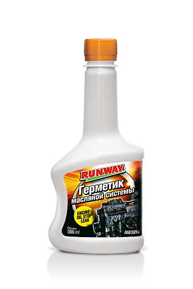 Герметик масляной системы RUNWAY - ликвидирует течи моторного масла через прокладки, сальники и другие уплотнители, в следствии их старения, деформации, затвердевания и растрескивания. Восстанавливает эластичность и геометрические размеры сальников и прокладок. Совместим со всеми типами моторных масел. Применение: pалейте содержимое флакона в маслозаливную горловину двигателя прогретого до рабочей температуры. Запустите двигатель и дайте ему поработать 15-20 минут на холостом ходу. Полное устранение протечек происходит через 24-48 часов. Внимание! Герметик не эффективен при механических повреждениях сальников и прокладок.Производитель: ЗАО ТК «ПОИСК», ул. Магнитогорская, д. 51 Ж, офис 344 (3 этаж), г. Санкт-Петербург, РФ