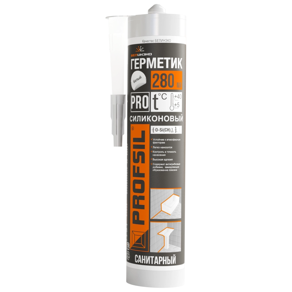 ПроизводителиГерметик силиконовый санитарный "Profsil" 280мл прозрачный туба БелИНЭКО