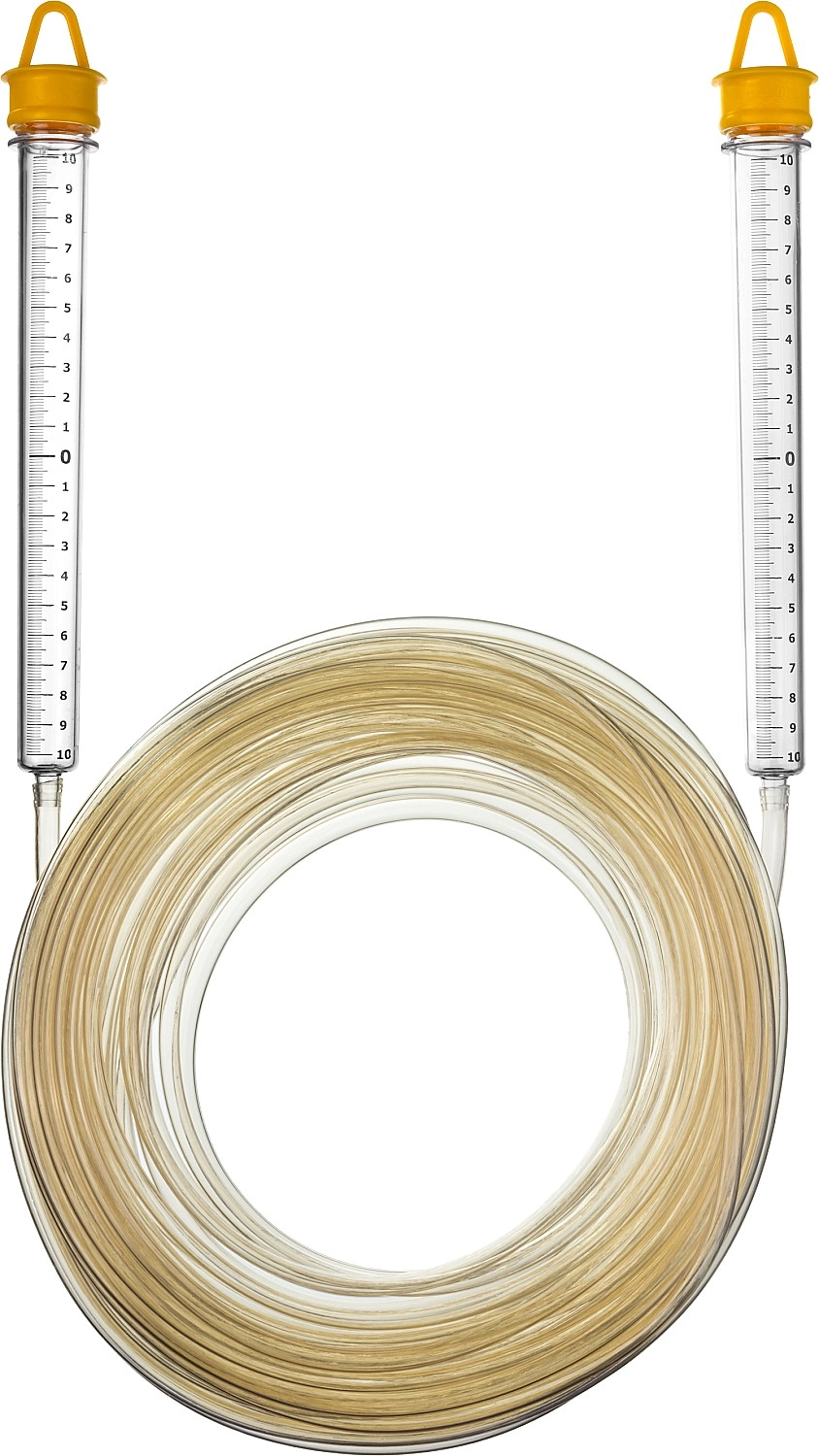 Колбы со шкалой изготовлены из пластика, шланг изготовлен из маслобензостойкого ПВХ.