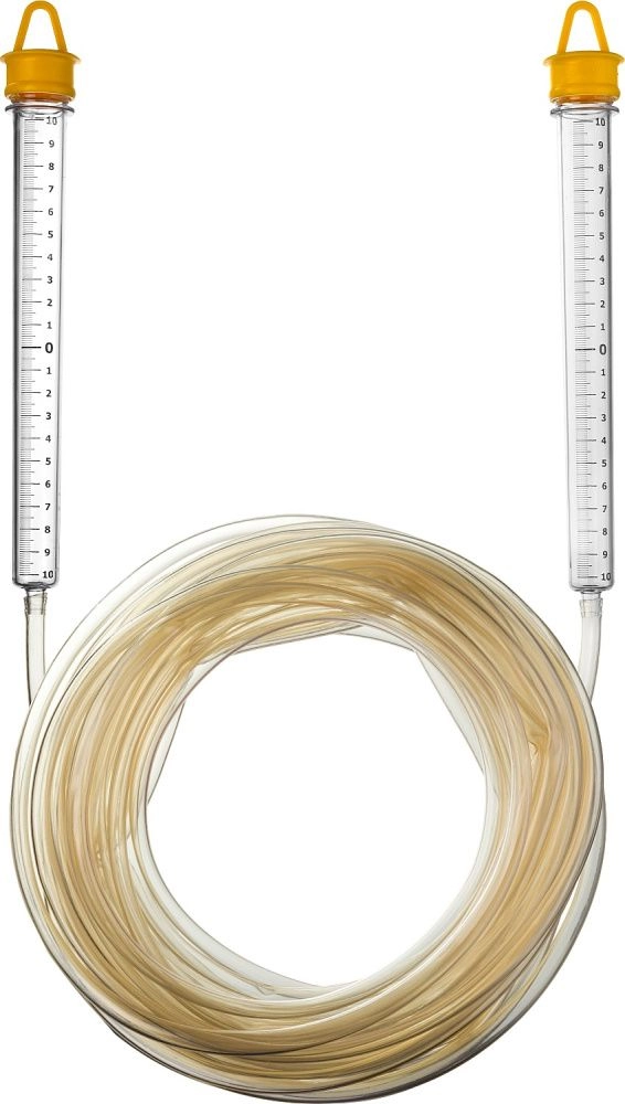 Колбы со шкалой изготовлены из пластика, шланг изготовлен из маслобензостойкого ПВХ.