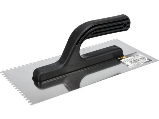 ПроизводителиГладилка нерж. зубчат. 125х270мм, зуб 4мм, пласт. рук. (06740) VOREL