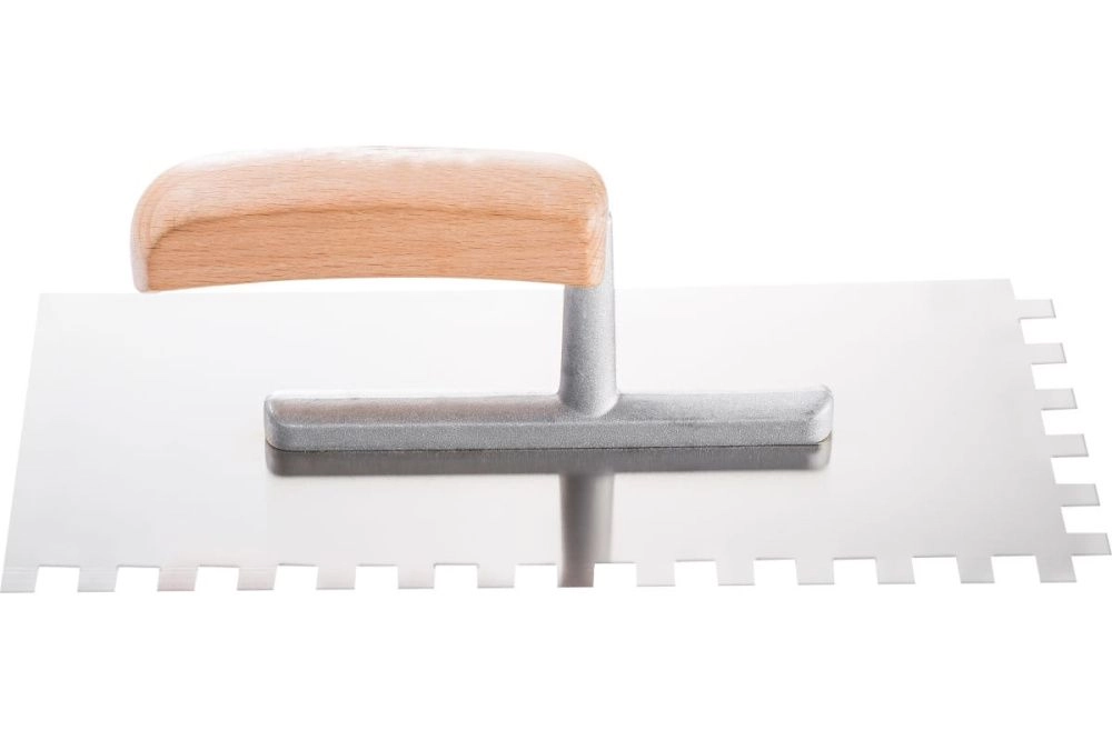 ПроизводителиГладилка нерж. зубчат. 130х280мм, зуб 10мм, с основанием, дер. рук., серия 25 (0800-252810) HARDY