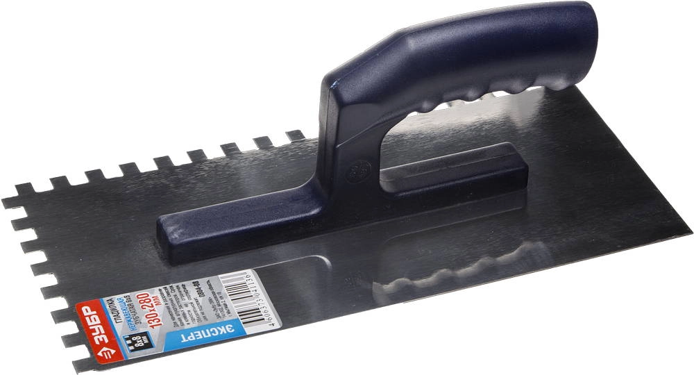 ПроизводителиГладилка нерж. зубчат. 130х280мм, зуб 8мм, пласт. рук. (0804-08) ЗУБР