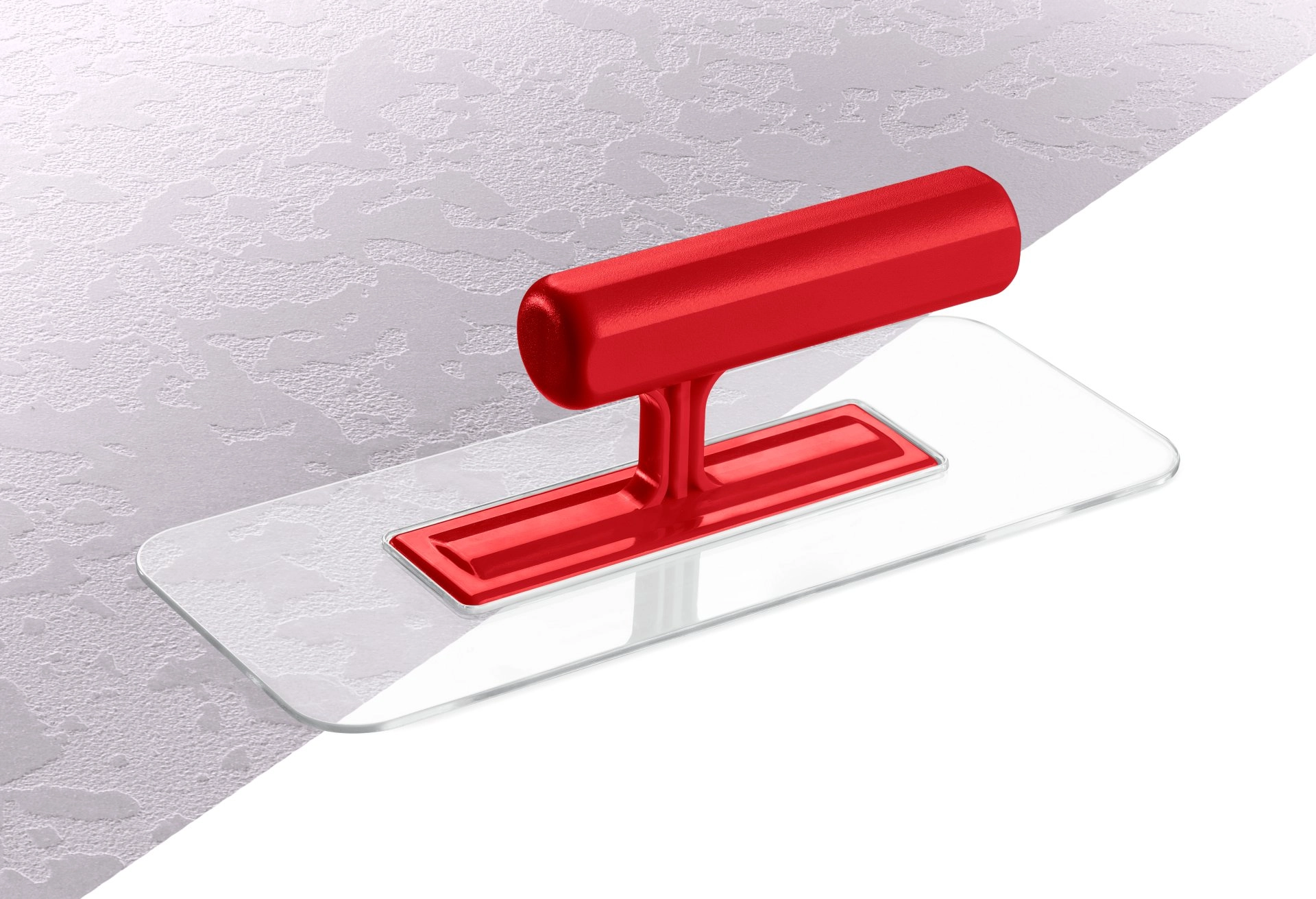 Инструмент произведен из ударопрочной пластмассы, которая позволяет добиться не только высокой эластичности полотна и ручки, но и повысить прочность всей конструкции в целом. Особенность данной модели - прозрачное полотно, позволяющее видеть текстуру разглаживаемой штукатурки