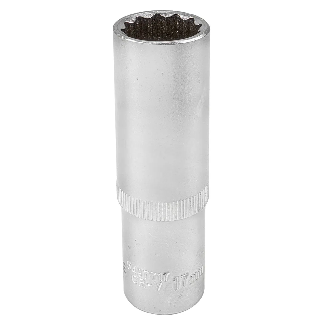 Головка глубокая 17мм (12 граней), 1/2" - это незаменимый инструмент для профессиональных механиков и автолюбителей. Головка изготовлена из высококачественной хромванадиевой стали, что придает ей прочность и стойкость к интенсивному использованию.