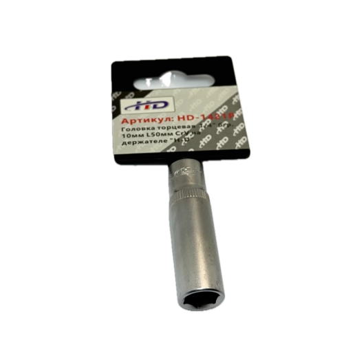 ПроизводителиГоловка торцевая 1/4" 6гр. 10мм L50мм CrV на держателе (HD-1421P) H-D
