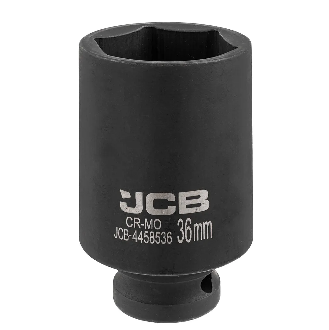 Головка ударная глубокая 6-гранная 36 мм 1/2" от бренда JCB — это высококачественный инструмент, предназначенный для эффективного откручивания крепежа с использованием пневмогайковерта или при применении ударных нагрузок через вороток, соединенный с головкой. Этот инструмент станет незаменимым помощником в различных механических работах и ремонте.Производитель: