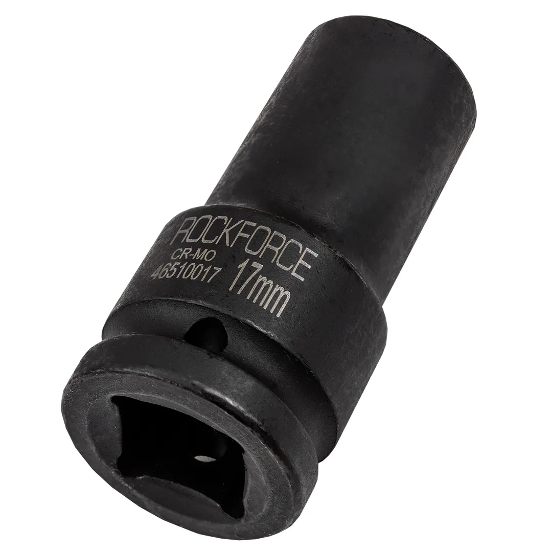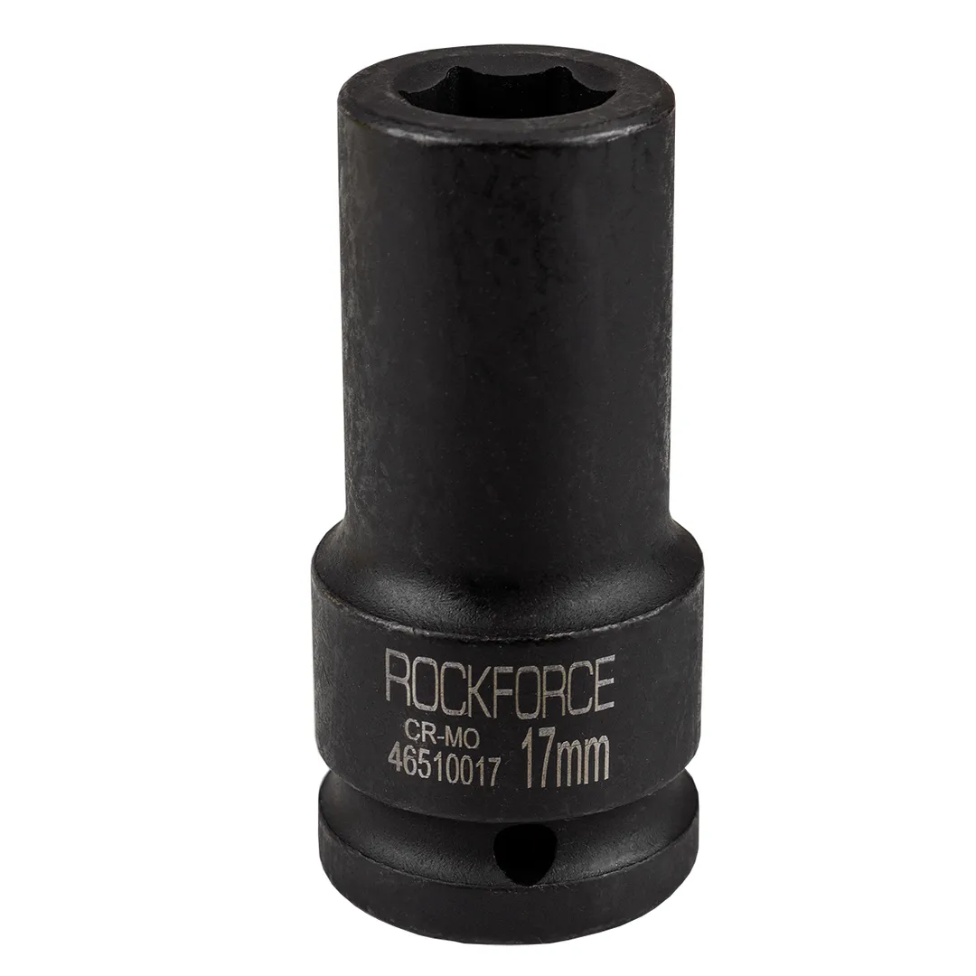 Торцевая головка ударная глубокая 17мм. Ударные торцевые головки с посадочным квадратом 3/4" шестигранные применяются как часть сборного инструмента в работе по обслуживанию экстремально нагруженных и крайне осложненных резьбовых соединений. Используется в тяжелой дорожной, строительной, сельскохозяйственной, горнодобывающей технике и оборудовании, при монтаже и обслуживании металлоконструкций строительных и инженерных сооружений и т.п. Удлиненные головки позволяют работать с крепежом, расположенных в углублениях или на длинных шпильках. Материал изготовления Хром-Молибден.Производитель: Рок Форс, Лтд.