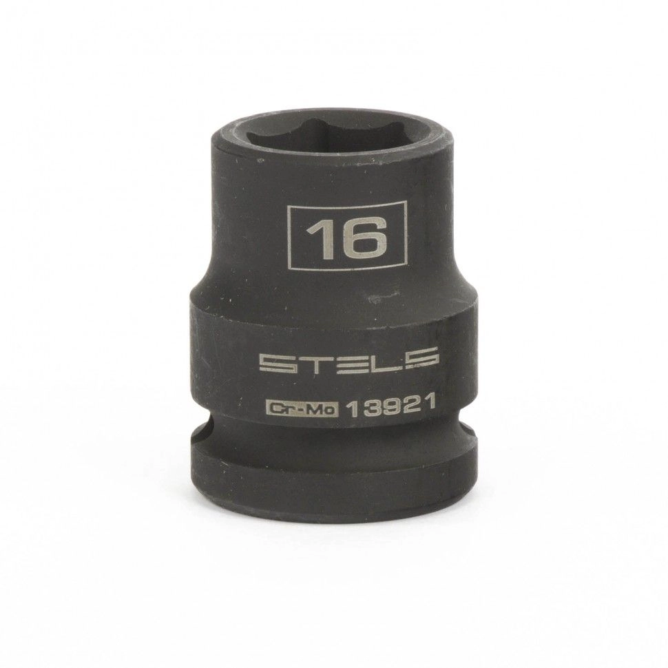 Ударная шестигранная головка Stels 13921 размером 16 мм, из стали CrMo, с присоединительным квадратом 1/2 дюйма, — сменная насадка для электрических и пневматических гайковертов.
