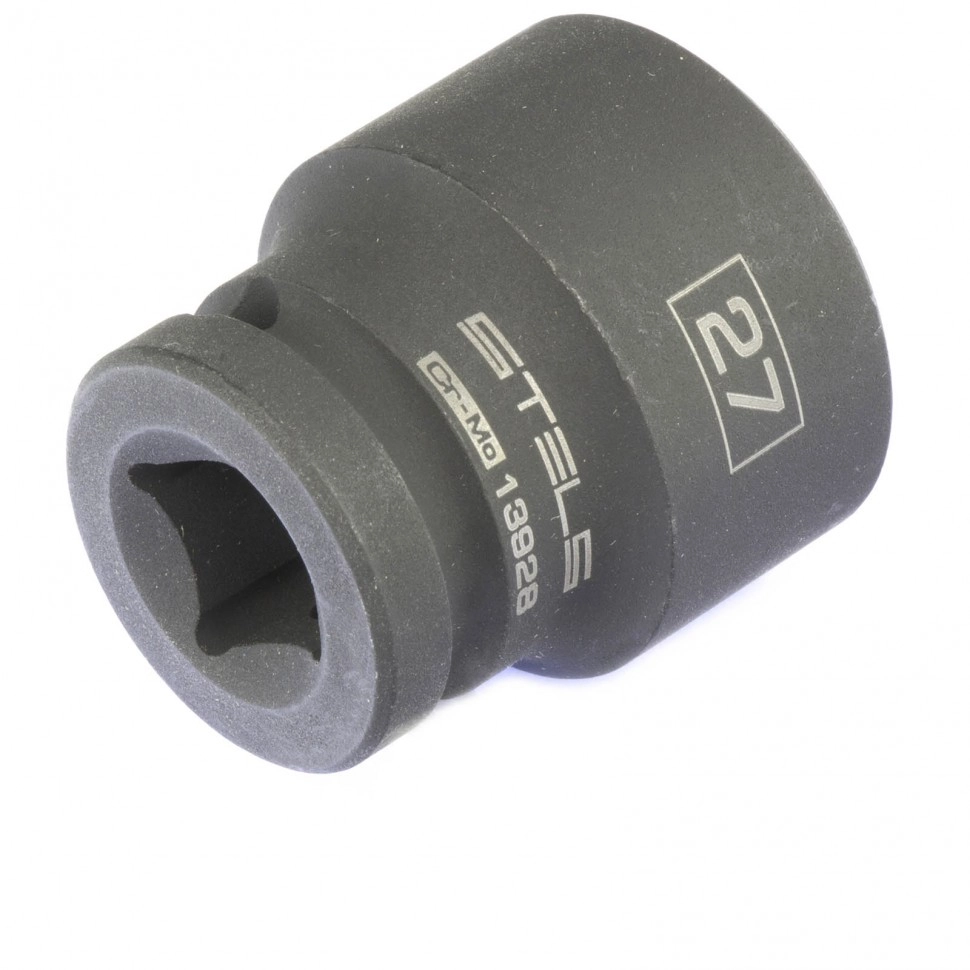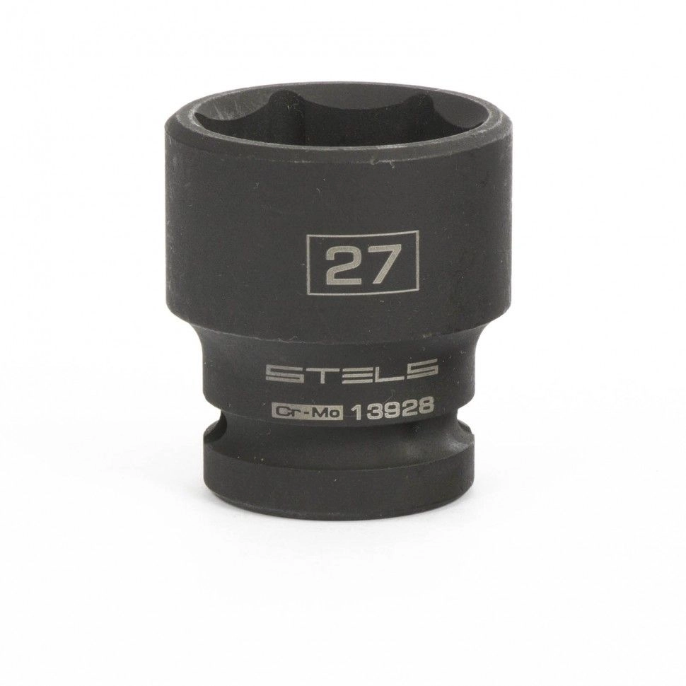 Ударная шестигранная головка Stels 13928 размером 27 мм, из стали CrMo, с присоединительным квадратом 1/2 дюйма, — сменная насадка для электрических и пневматических гайковертов.
