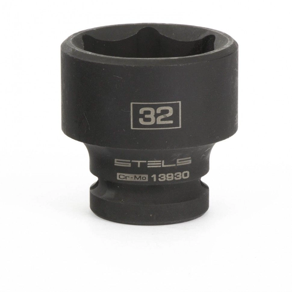 Ударная шестигранная головка Stels 13930 размером 32 мм, из стали CrMo, с присоединительным квадратом 1/2 дюйма, — сменная насадка для электрических и пневматических гайковертов.