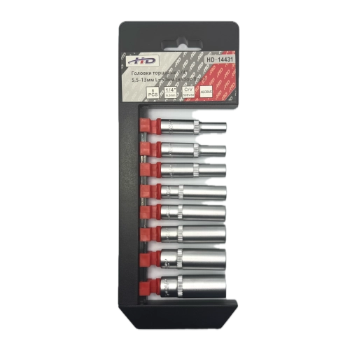 ПроизводителиГоловки торцевые 1/4" 5,5-13мм L=50мм (набор 8пр.) CrV (HD-14431) H-D