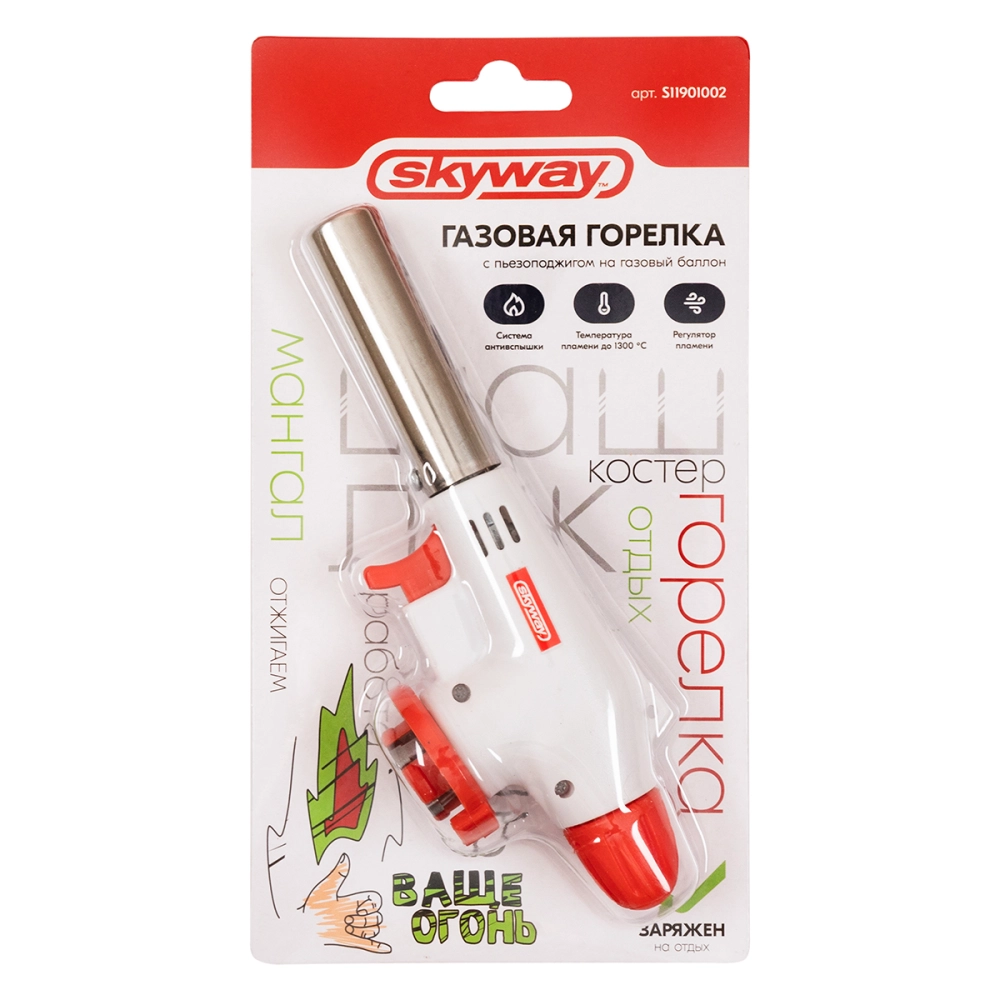 ПроизводителиГорелка газовая на цанговый баллон с пьезоподжигом 1002 (S11901002) SKYWAY