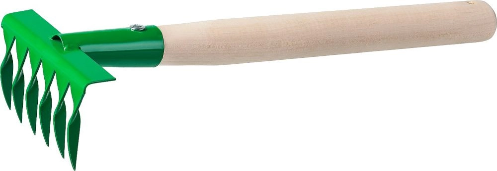 ПроизводителиГрабельки садовые с деревянной ручкой, РОСТОК 39611, 6 витых зубцов, 120x62x405 мм