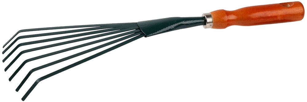 ПроизводителиГрабельки GRINDA веерные с плоскими зубцами, из углеродистой стали с деревянной ручкой, 390 мм