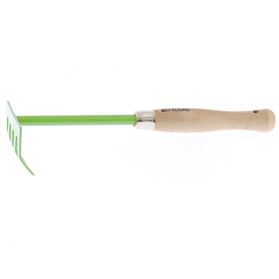Стальные 5-зубые грабли Palisad CLASSIC 61755 с деревянной рукояткой, 90 х 330 мм, используются при проведении мелких садово-огородных работ.