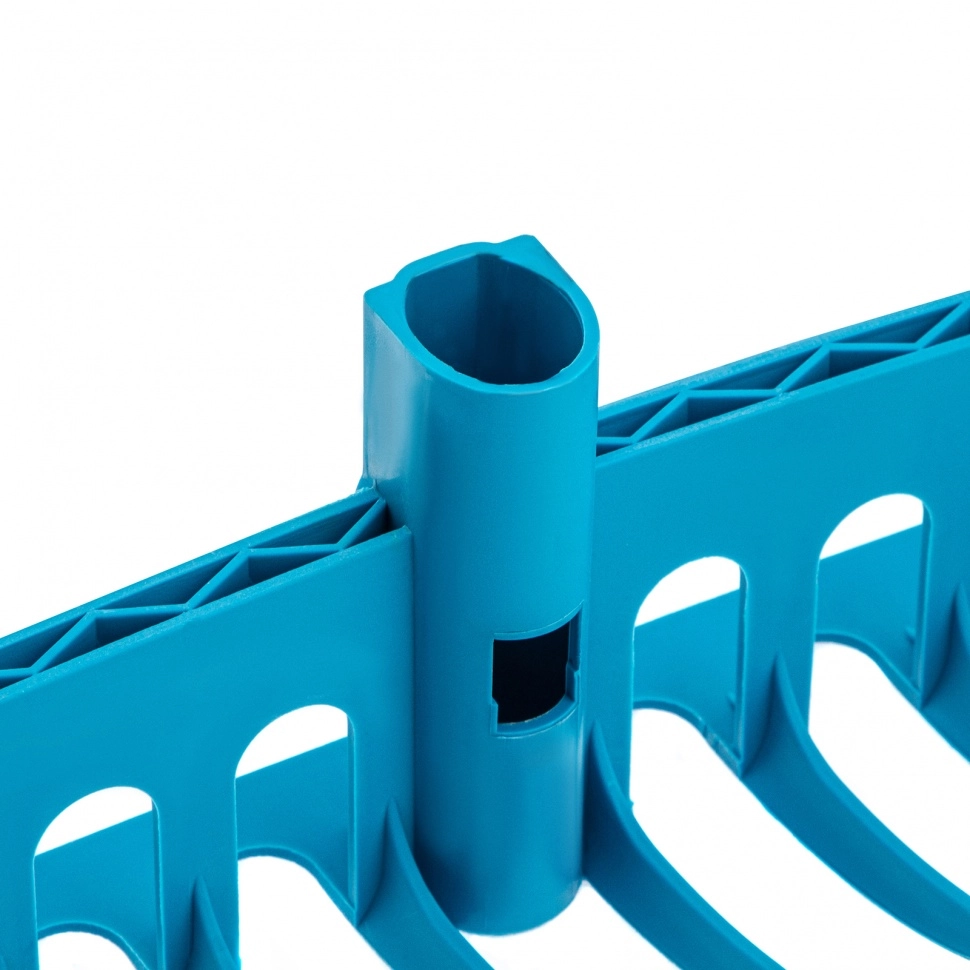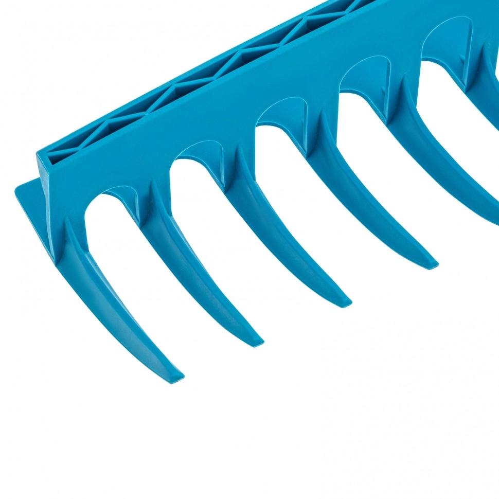 Благодаря утолщеннному профилю зубьев и ребрам жесткости грабли выдерживают большие нагрузки и не ломаются.