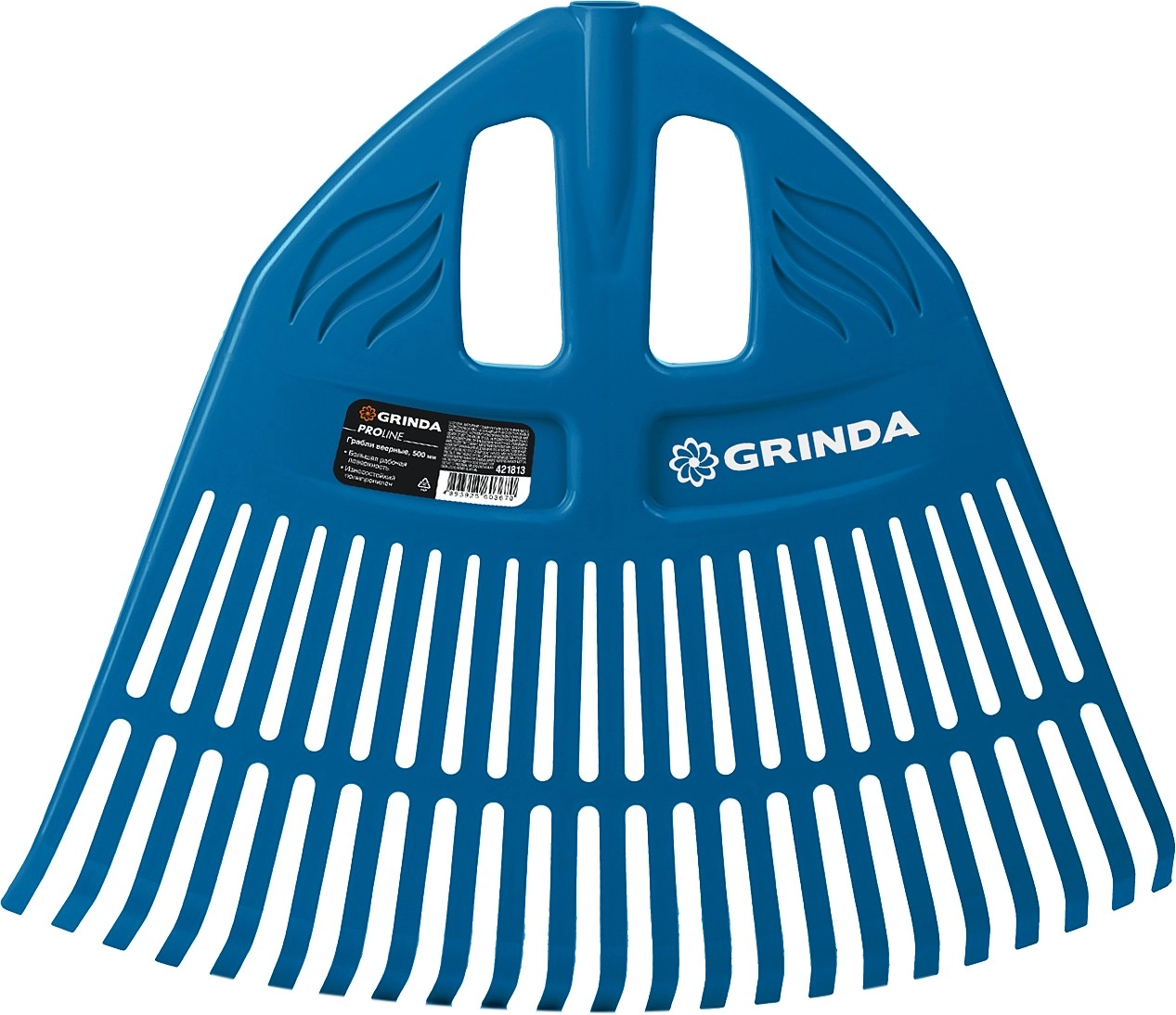 Веерные грабли пластиковые без черенка GRINDA 421813, применяются для уборки территории от скошенной травы или опавших листьев и другого мусора при выполнении садово-огородных работ. Большая рабочая поверхность из прочного полипропилена.