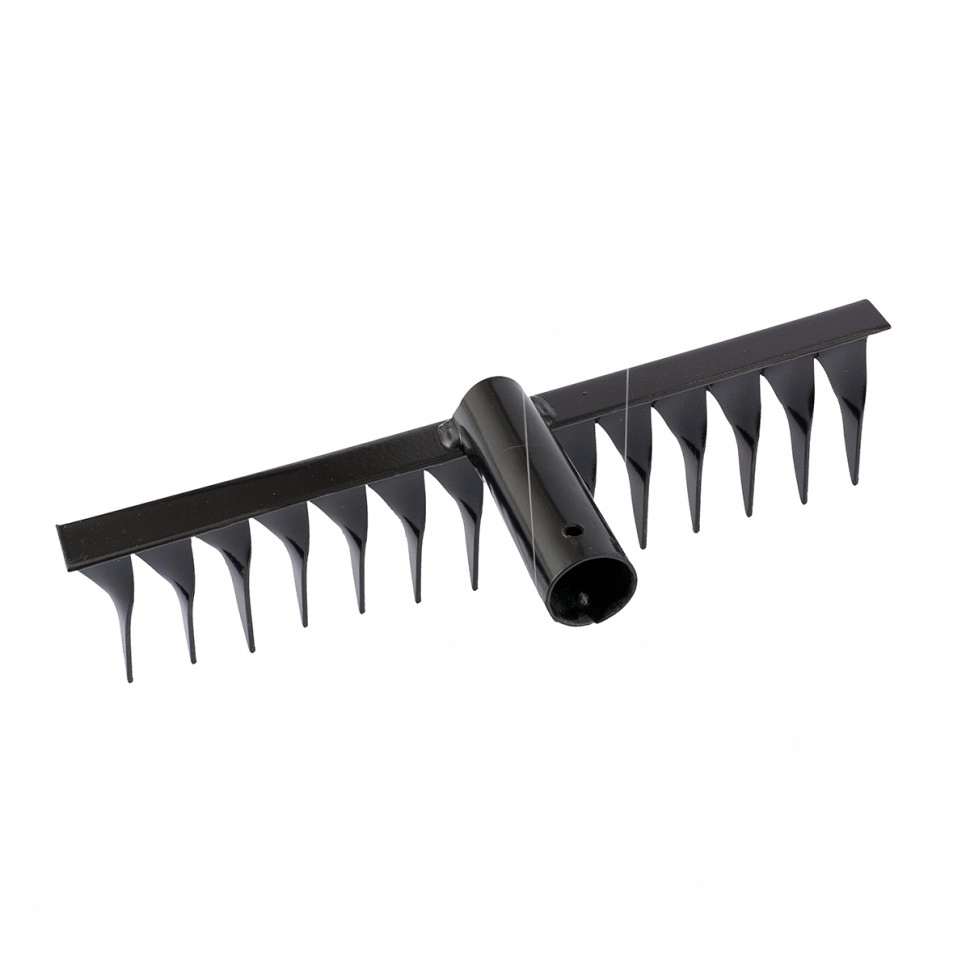 Рабочая часть и тулейка изготовлены из конструкционной углеродистой стали, а зубья утолщены, поэтому грабли выдерживают большие нагрузки.