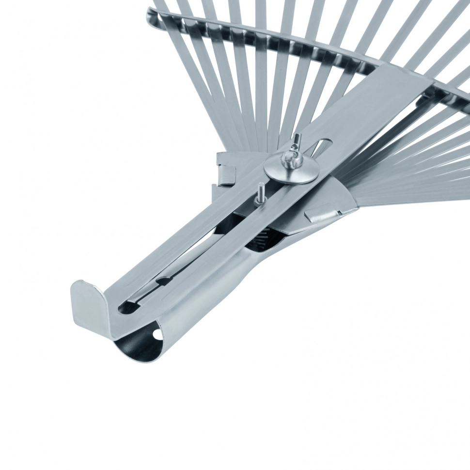 Грабли веерные стальные Palisad 617675 с 22 плоскими зубьями, раздвижные оцинкованные, 300-480 мм, предназначены для очистки от мусора газонов, придомовых территорий и грядок.
