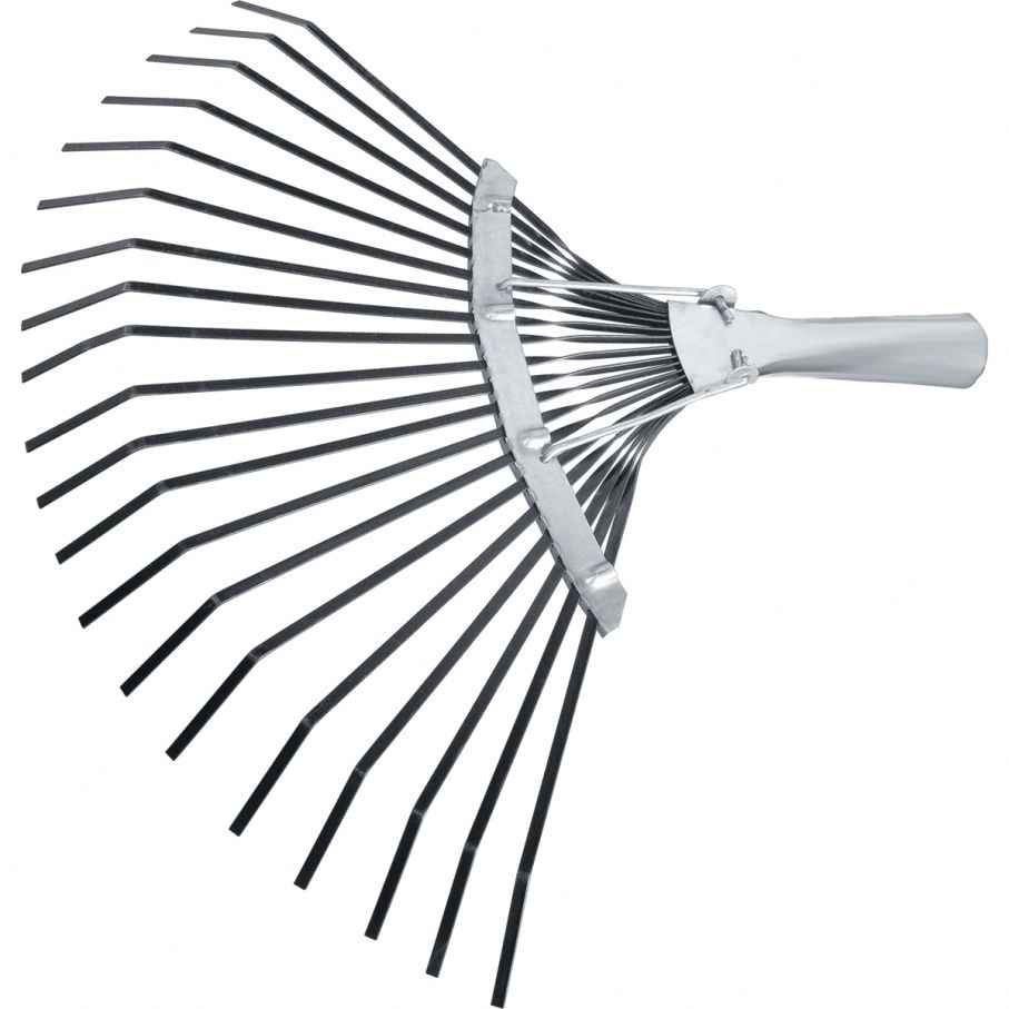 ПроизводителиГрабли веерные стальные, 385 мм, 20 плоских зубьев, оксидированные, без черенка (61778) СИБРТЕХ