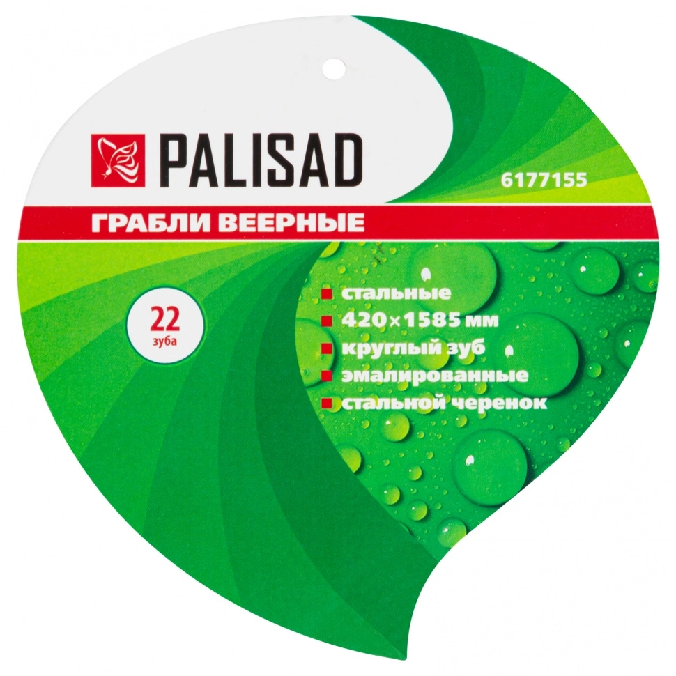 ПроизводителиГрабли веерные стальные, 420х1585 мм, 22 круглых зуба, эмалир., стальной черенок (6177155) PALISAD