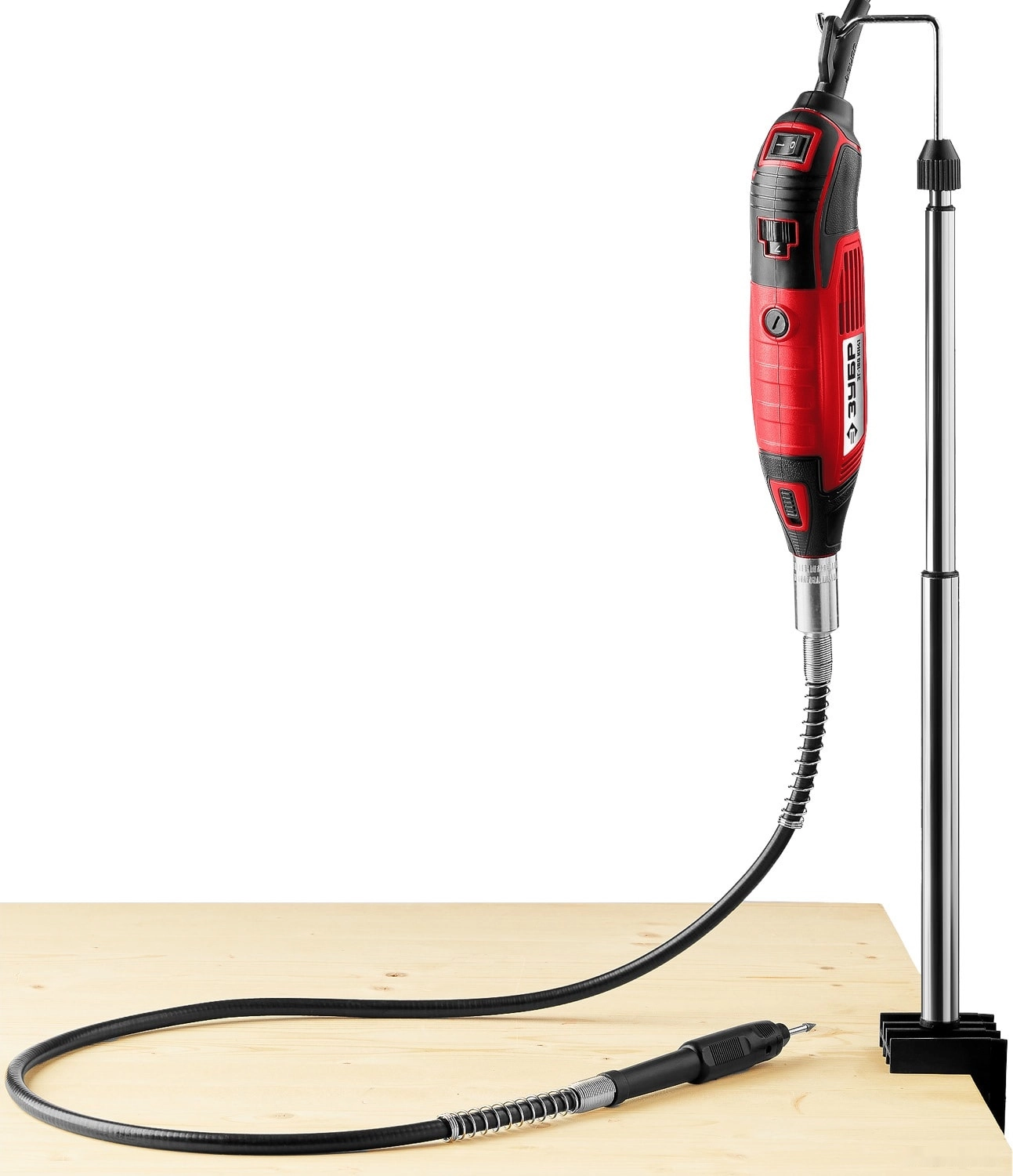 - Гибкий вал и штатив с кронштейном облегчают нанесение гравировки, позволяя использовать естественный хват ручки