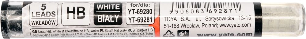 ПроизводителиГрифель для карандаша автом. YT-69280, белый, HB (5шт.)(YT-69287) YATO