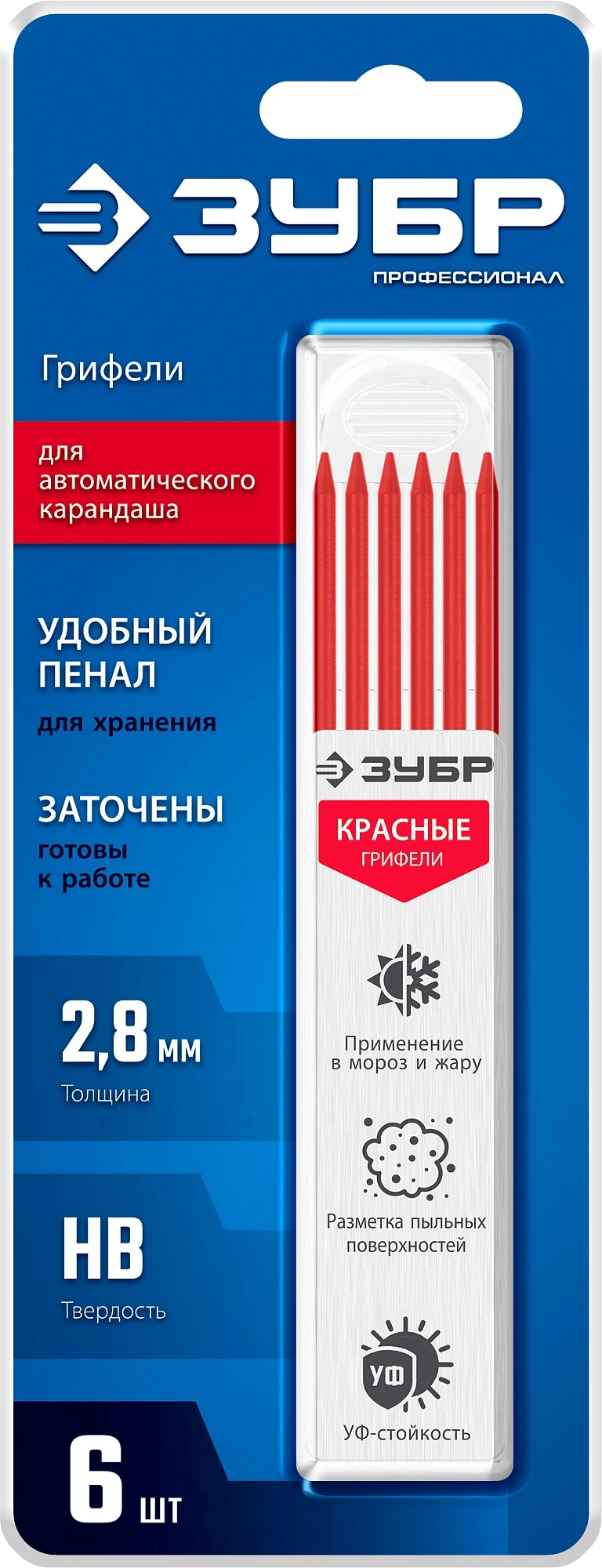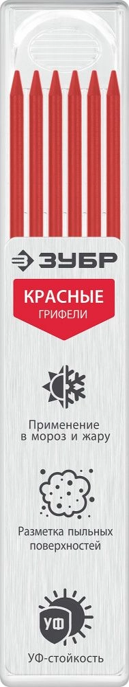 ПроизводителиГрифели сменные для автоматического строительного карандаша, 6шт. красные (06313-3) ЗУБР