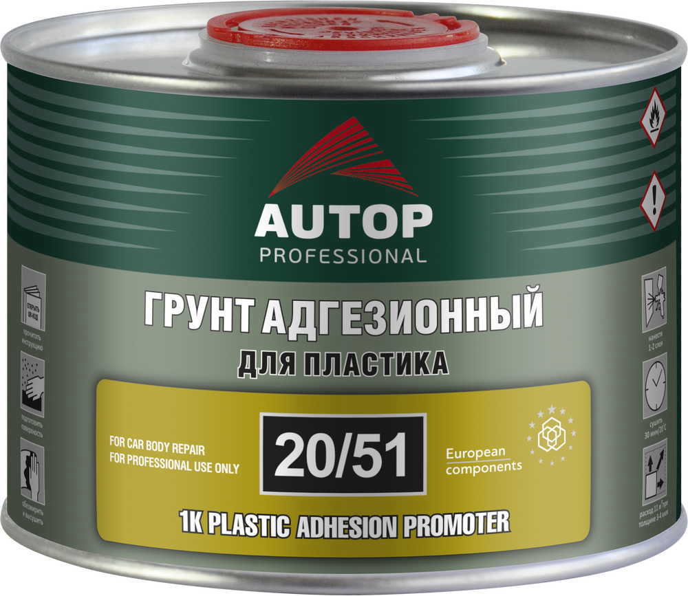 Однокомпонентный быстросохнущий адгезионный грунт AUTOP 20/51 применяется для подготовки поверхности при ремонтной покраске пластиковых деталей автомобилей. Улучшает сцепление грунтов, эмалей, клеев и герметиков с большинством видов пластмасс и стеклопластиков (кроме полиэтилена). Готов к использованию без дополнительного разбавления. Создает качественную основу для нанесения большинства лакокрасочных материалов. Поверхности нанесения: Все пластиковые детали, за исключением деталей сделанных из чистого PE (полиэтилена). Не рекомендуется наносить грунт адгезионный для пластика на детали с имеющимся на поверхности заводским грунтом.Производитель: