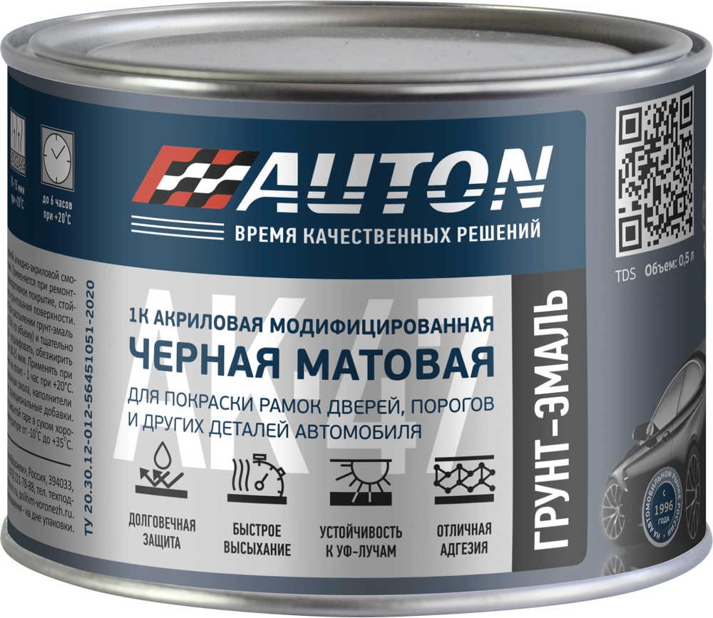 ПроизводителиГрунт-эмаль 1К акриловая модифицированная АК 47, черная матовая, банка 0,5л (ATN-P07730-05) AUTON