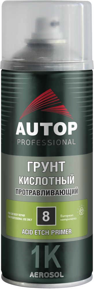 Быстросохнущий кислотный протравливающий грунт AUTOP №8 ATP-A07521 Acid Etch Primer предназначен для подготовки поверхности деталей автомобилей при ремонтной покраске. Предотвращает образование подпленочной коррозии. Повышает адгезию к различным металлам, в т.ч. к алюминию, оцинкованной и нержавеющей стали. Грунт наносится на зашлифованный и обезжиренный голый металл перед применением акрилового грунта. Последующее покрытие наносить не ранее, чем через 20-30 минут после нанесения кислотного грунта. На грунт нельзя наносить полиэфирные материалы. Подложки и подготовка Сталь - отшлифовать абразивом Р120-Р180 Алюминий - абразивом Р280-Р360 Нержавейка - Р220-Р320, Оцинковка - подготовить скотч-брайтом. Применение Оптимальная температура для нанесения 18-25°С, влажность 50-60%. Распылить с расстояния 15-20 сантиметров от поверхности в 1-2 слоя с межслойной выдержкой 5-10 минут. Толщина высушенной пленки 8-10 мкм. ВысыПроизводитель: