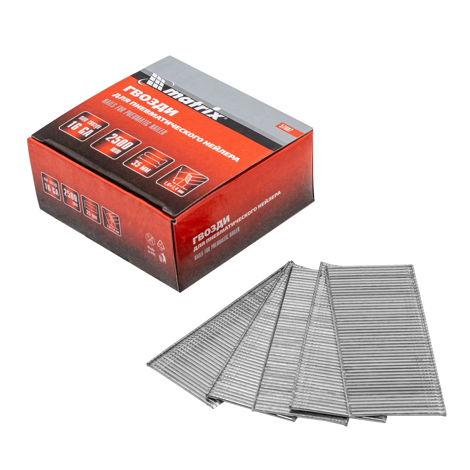ПроизводителиГвозди 16GA для пневм. нейлера сечение 1,6х1,4, длина 35 мм, 2500 шт (57607) MATRIX