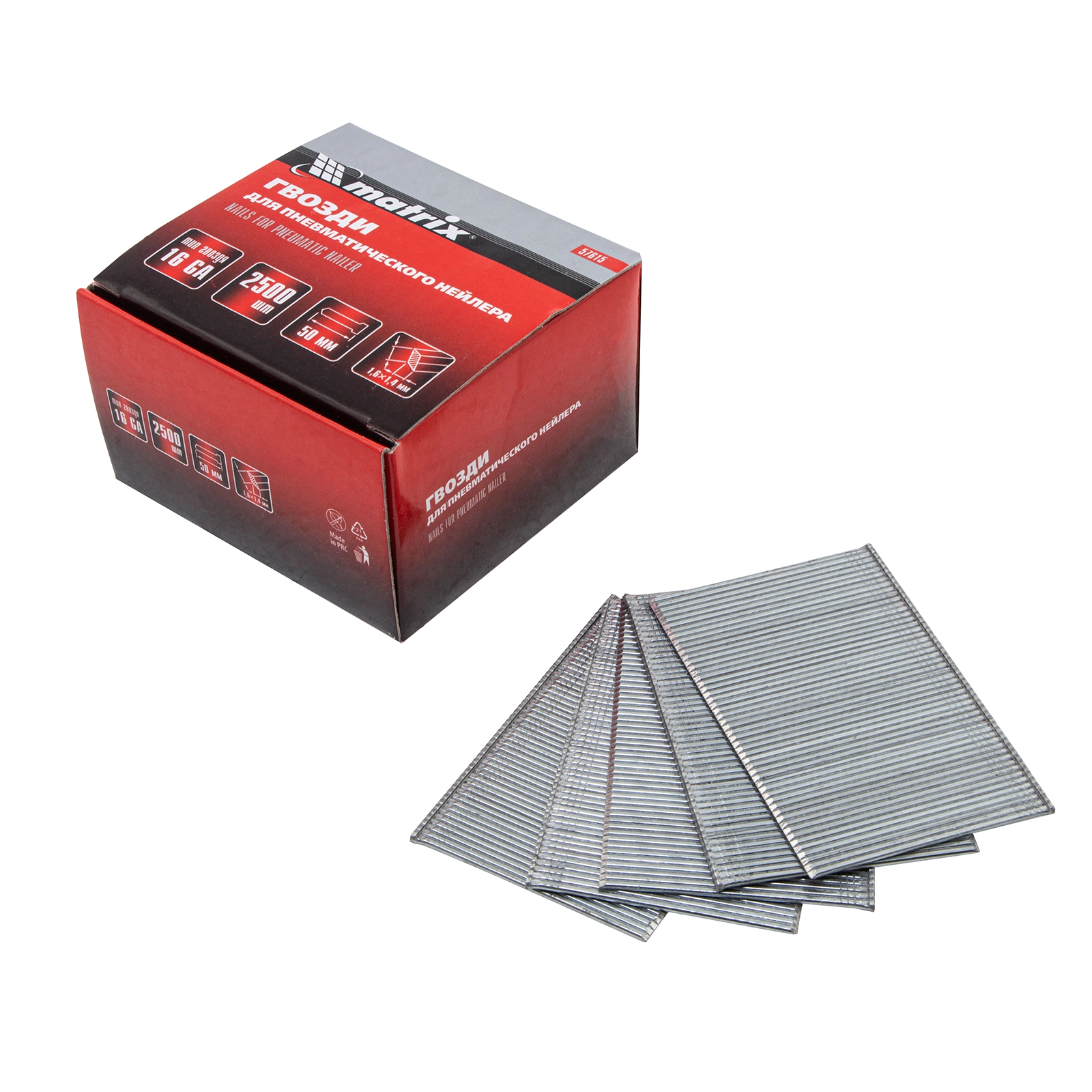 ПроизводителиГвозди 16GA для пневм. нейлера сечение 1,6х1,4, длина 50 мм, 2500 шт (57615) MATRIX