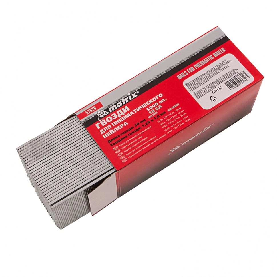 Гвозди Matrix 57620, тип 18GA, предназначены для пневматических нейлеров, работающих с оснасткой размером 50 х 1,25 х 1 мм.