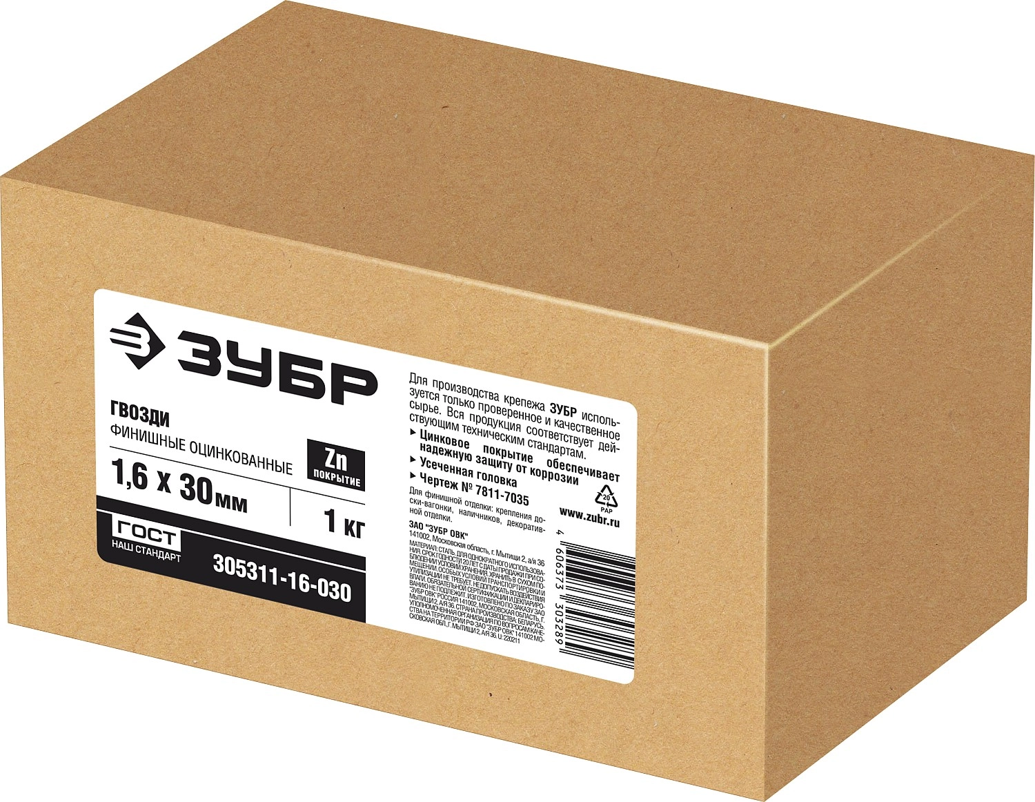 ПроизводителиГвозди финишные 30х1.6мм, цинк, 1кг, (305311-16-030) ЗУБР