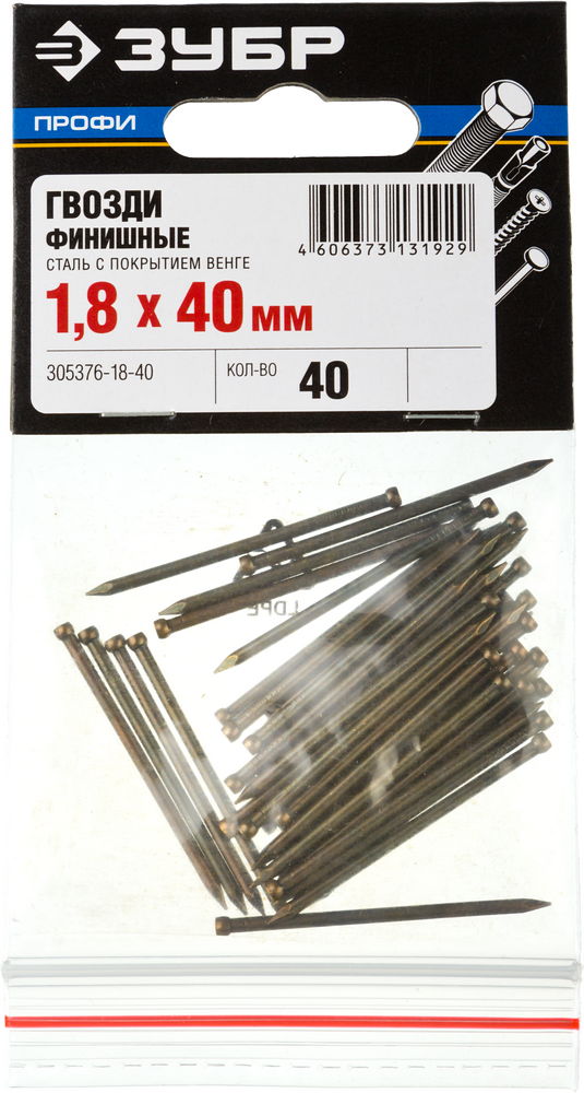 ПроизводителиГвоздь финишный с покрытием венге Ø 40x1.8 мм, 40шт. (305376-18-40) ЗУБР