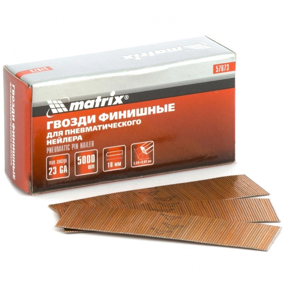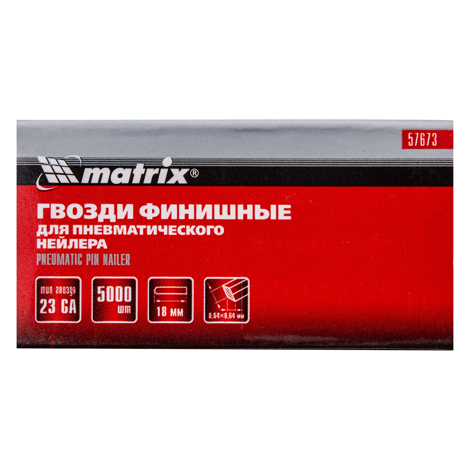 Гвозди финишные (шпильки) Matrix 23 GA 57673 диаметром 0,64 мм и длиной 18 мм, 5000 шт.