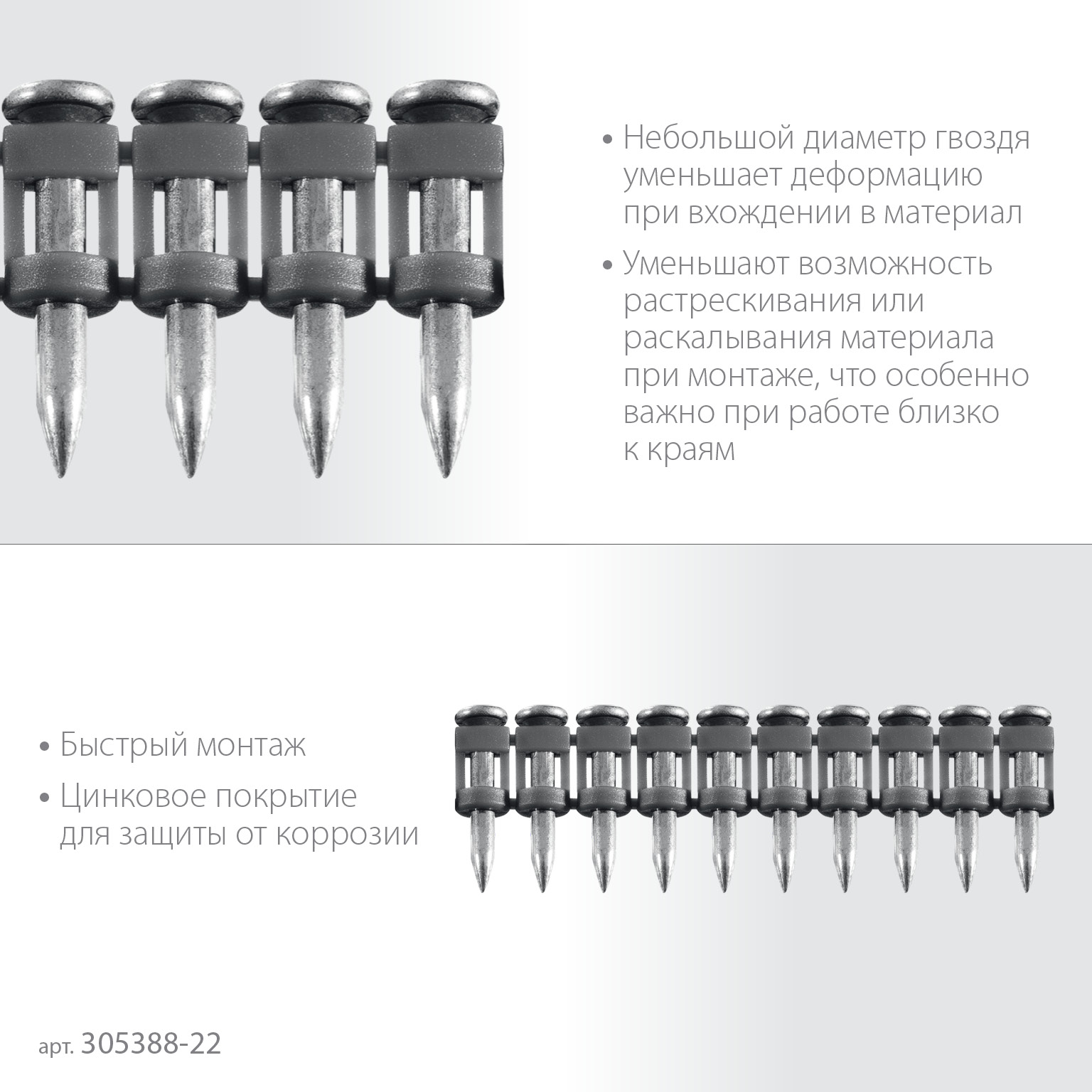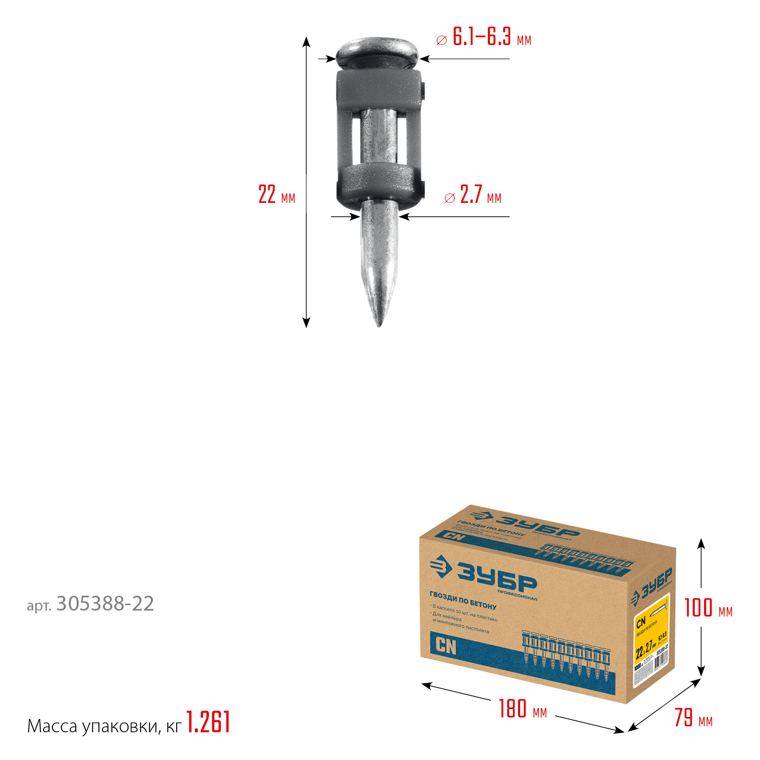 ПроизводителиГвозди монтажные по бетону оцинкованные CN 22х2.7мм, 1000 шт (305388-22) ЗУБР