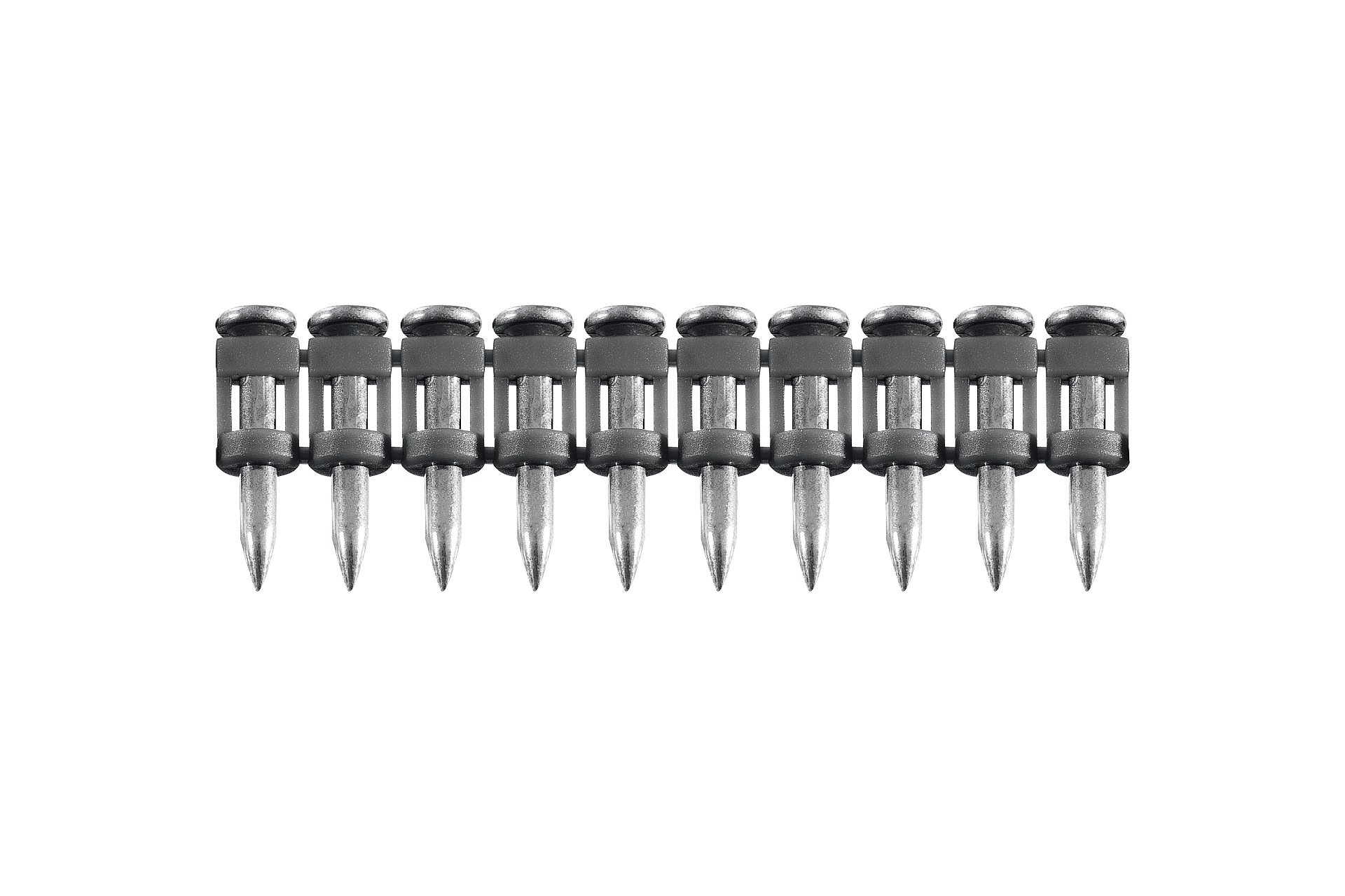 Гвозди по бетону соединены в кассету и забиваются при помощи газового или пневматического гвоздезабивного пистолета (нейлера). Необходимый размер гвоздя подбирается в зависимости от монтируемых материалов.