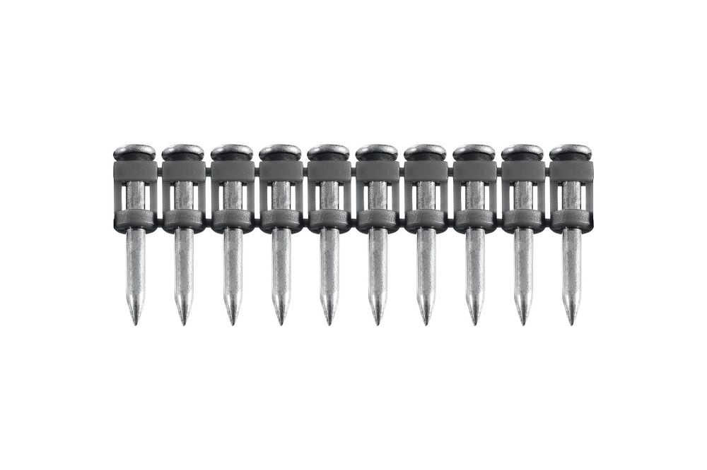 Гвозди по бетону соединены в кассету и забиваются при помощи газового или пневматического гвоздезабивного пистолета (нейлера). Необходимый размер гвоздя подбирается в зависимости от монтируемых материалов.