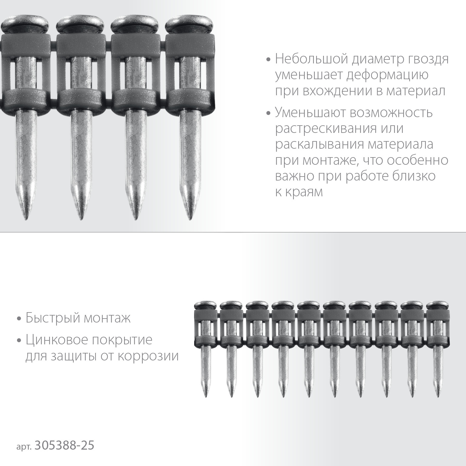 ПроизводителиГвозди монтажные по бетону оцинкованные CN 25х2.7мм, 1000 шт (305388-25) ЗУБР