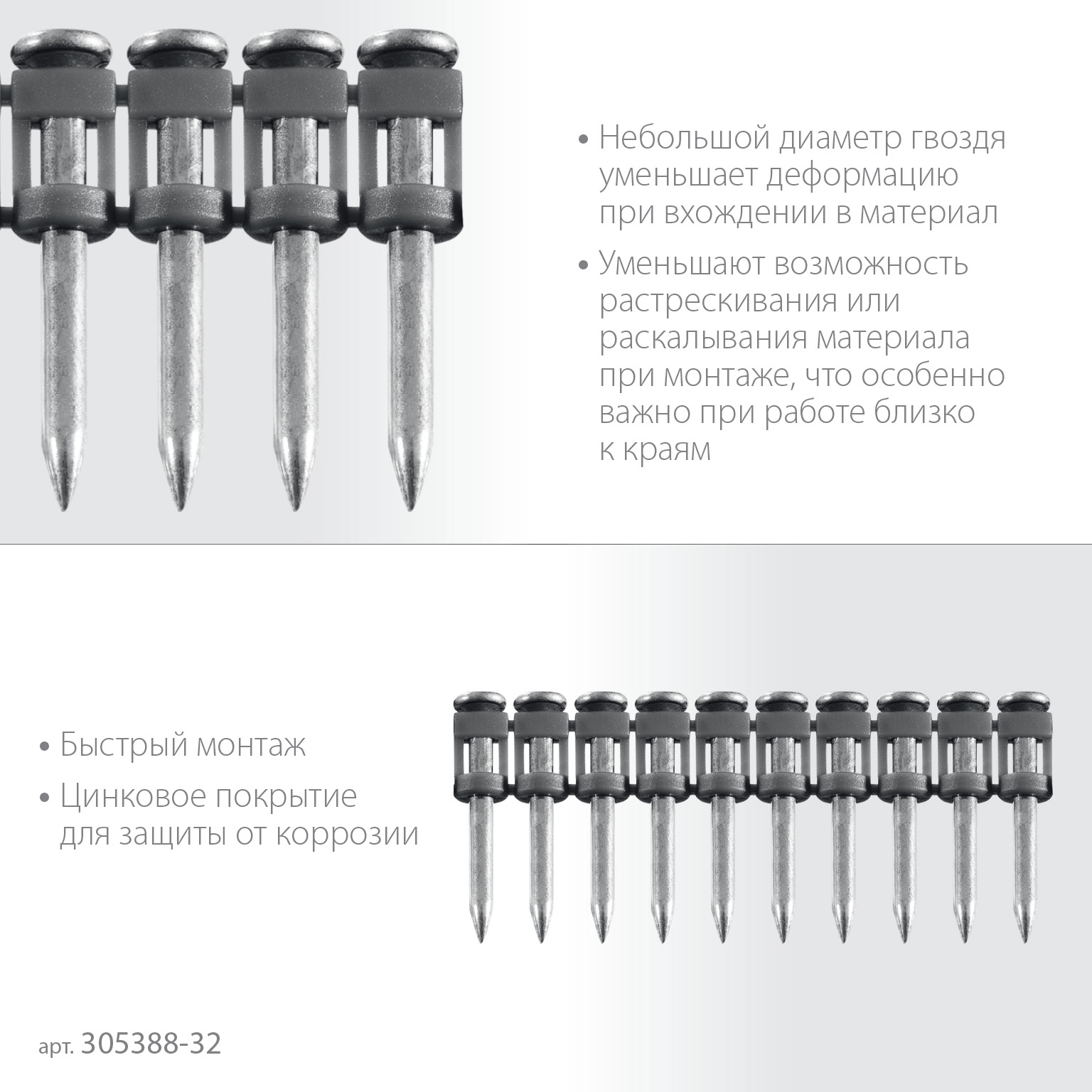 Маленький диаметр гвоздя уменьшает деформацию при вхождении в материал.