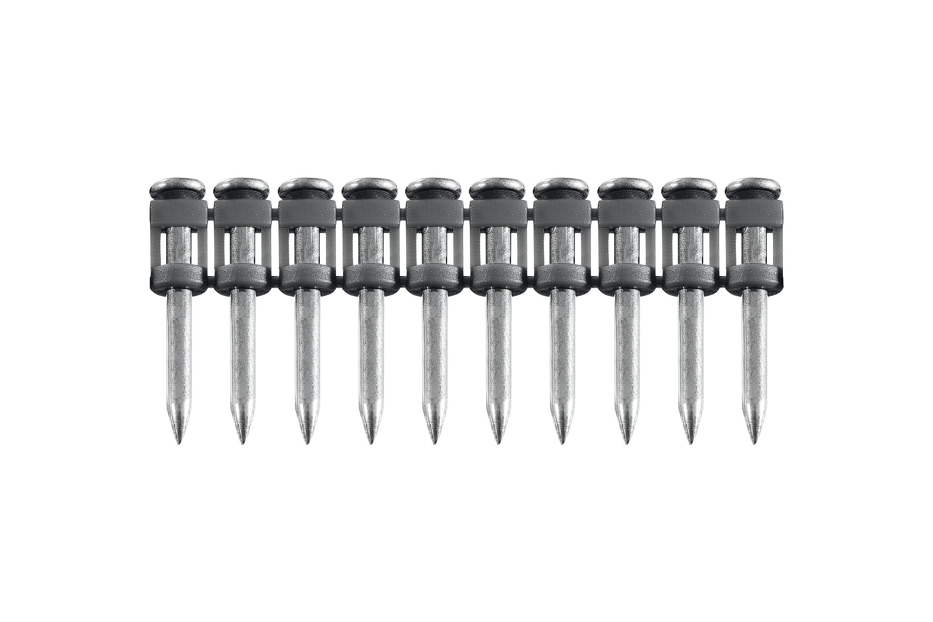 Гвозди по бетону соединены в кассету и забиваются при помощи газового или пневматического гвоздезабивного пистолета (нейлера). Необходимый размер гвоздя подбирается в зависимости от монтируемых материалов.