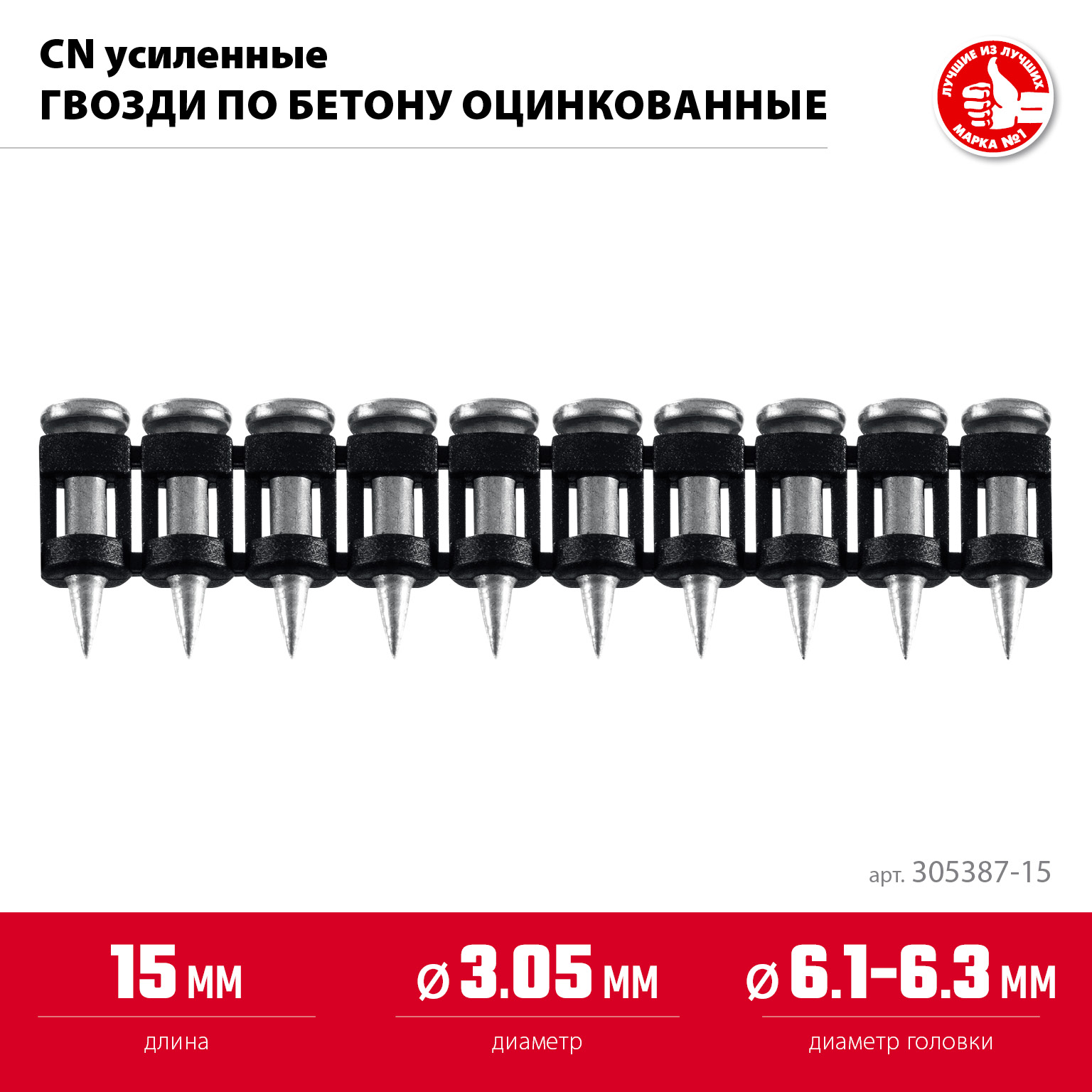 ПроизводителиГвозди монтажные по бетону оцинкованные CN усиленные 15х3.05мм, 1000 шт (305387-15) ЗУБР